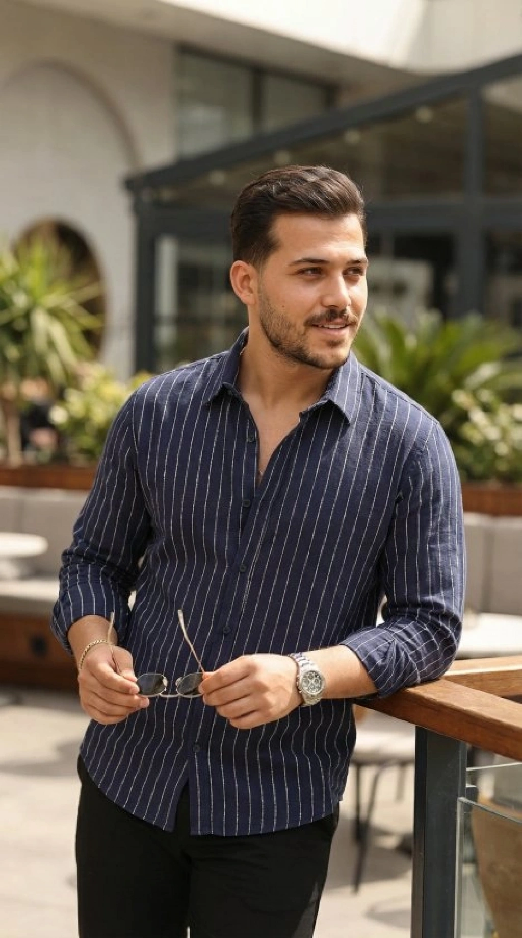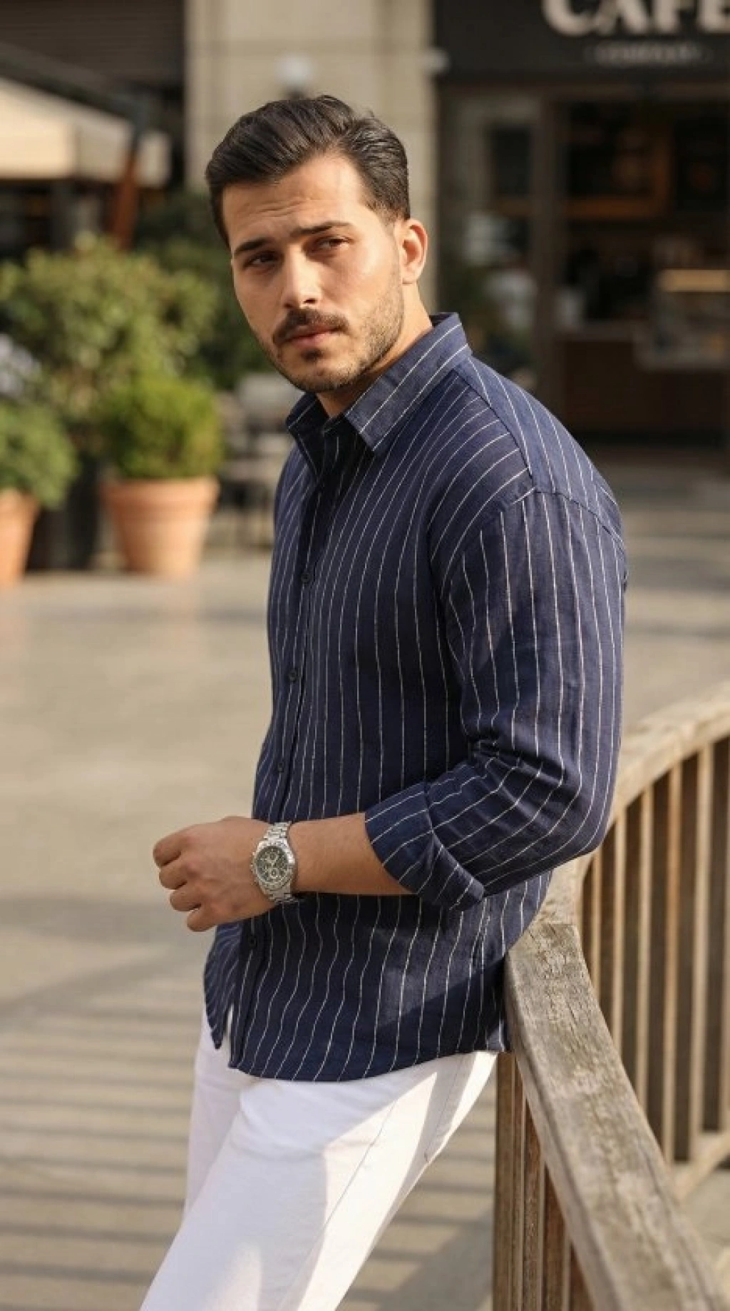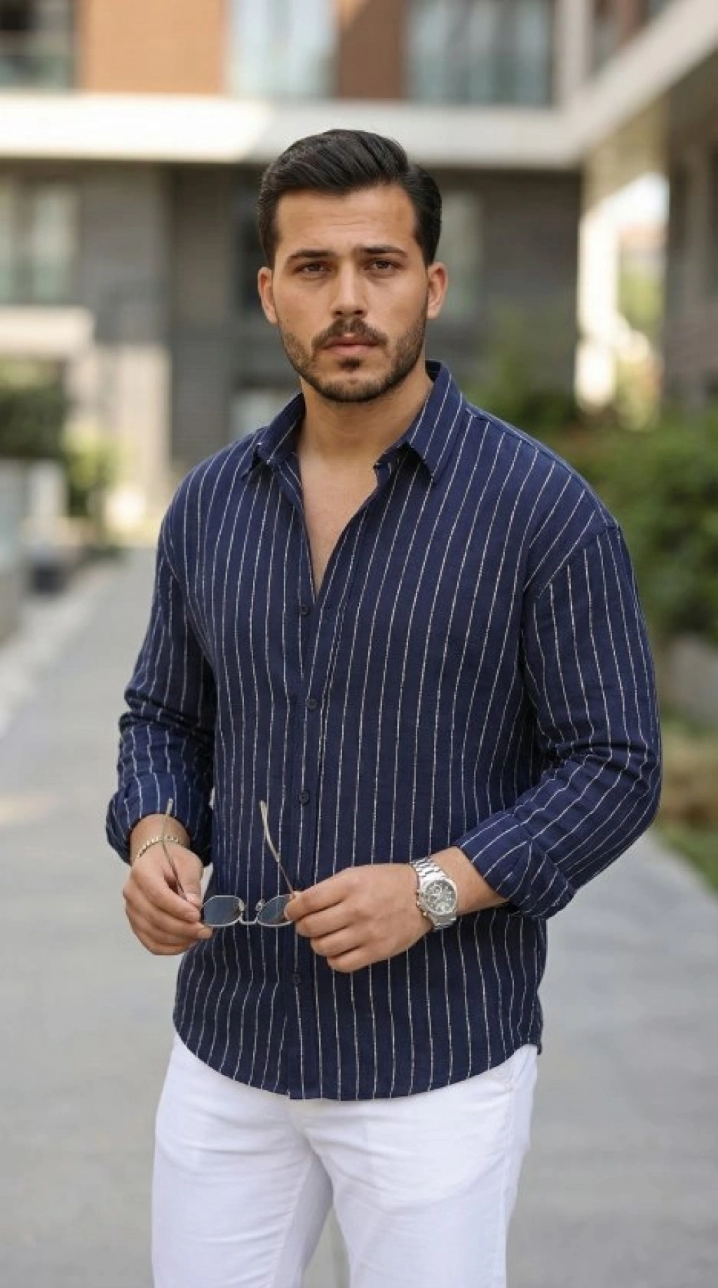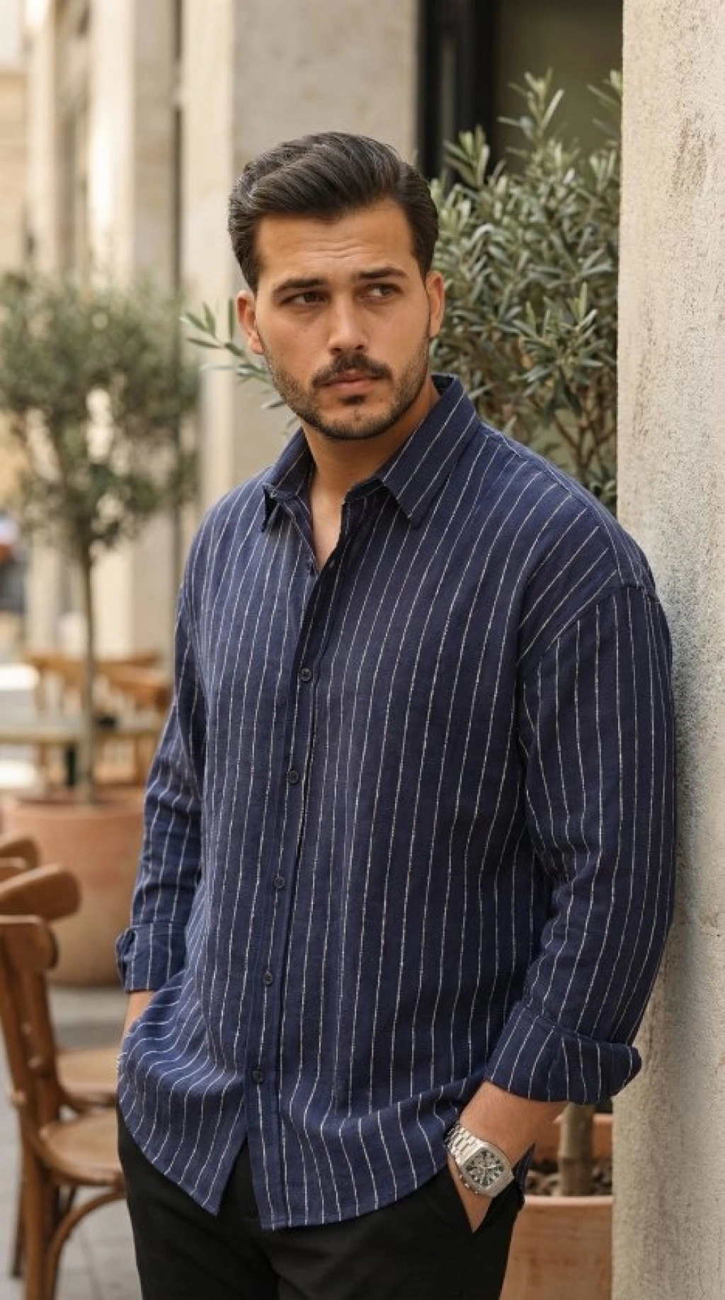 Erkek Çizgili Keten Gömlek