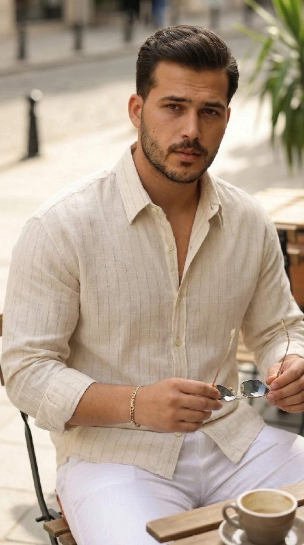 Erkek KETEN Kumaş Oversize Uzun Kollu Rahat Kalıp Gömlek aks avisi