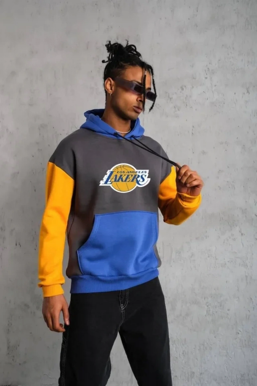 Erkek Çok Parçalı Kapüşonlu Ve Kordon İpli Sweatshirt - Füme