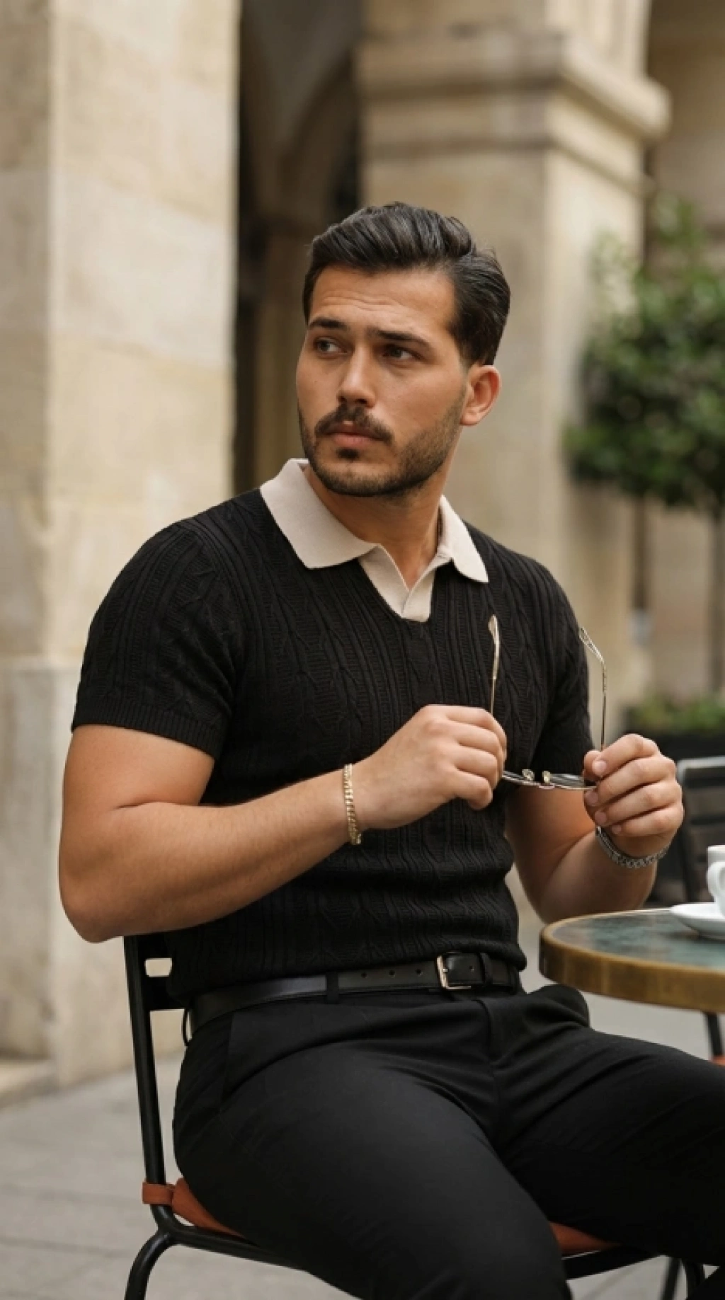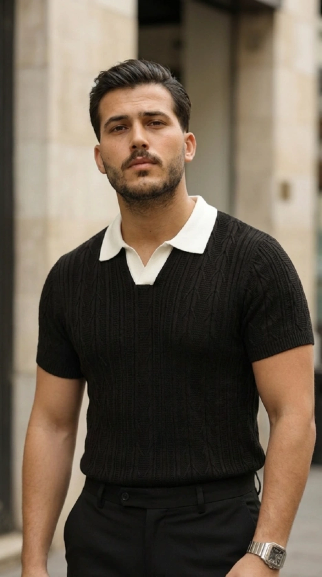 Erkek Kısa Kol Fitilli Triko Thirt Yazlık Hakim Yaka Tişört Bej