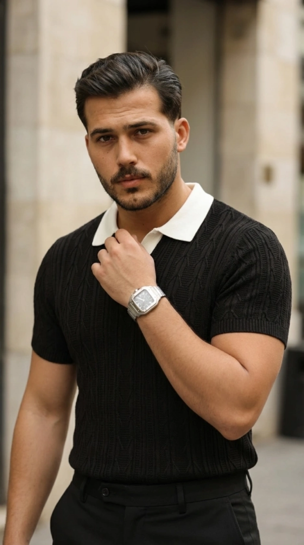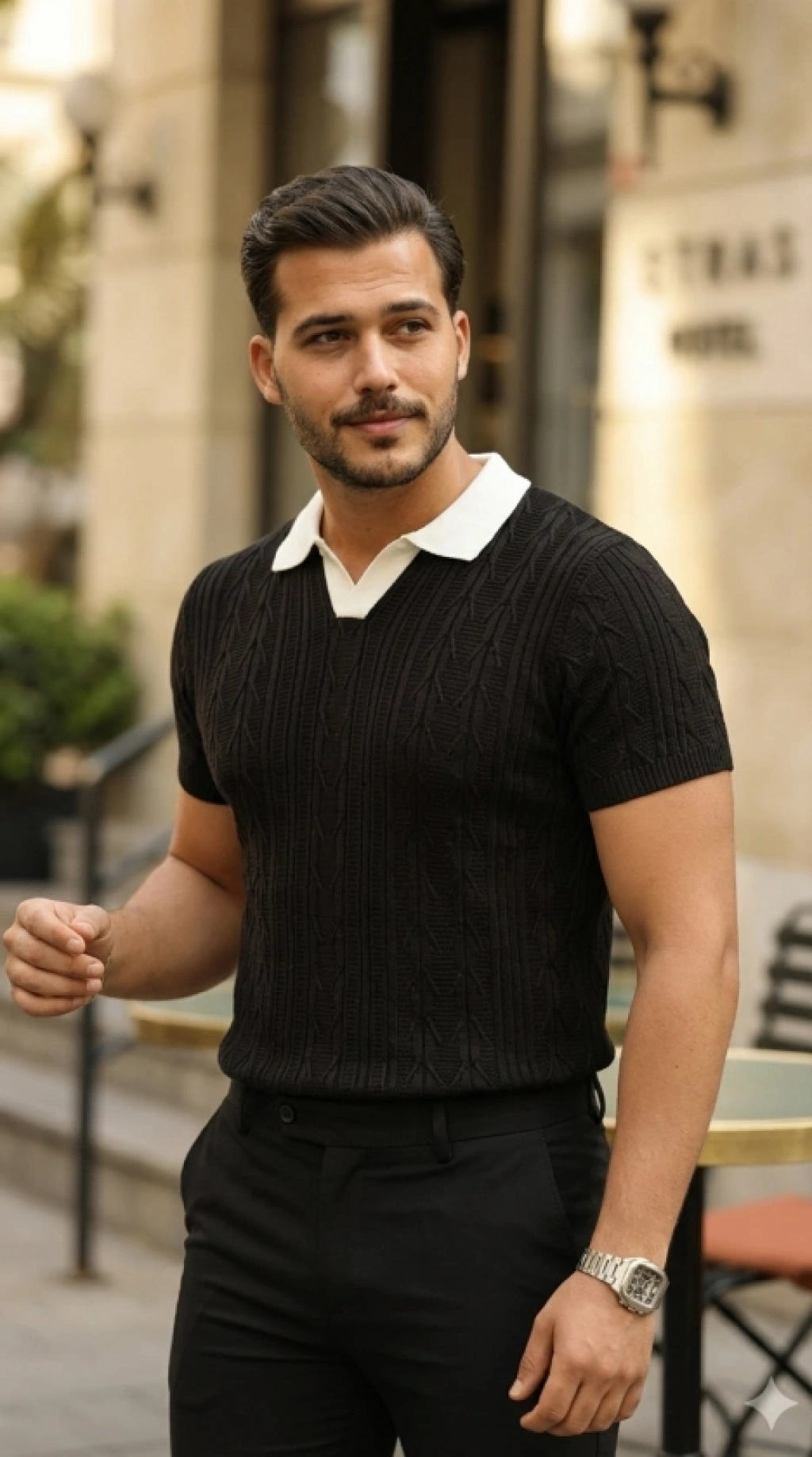Erkek Triko Polo Yaka Fermuarlı Çizgili Tişört Thirt Yazlık Şık iyah