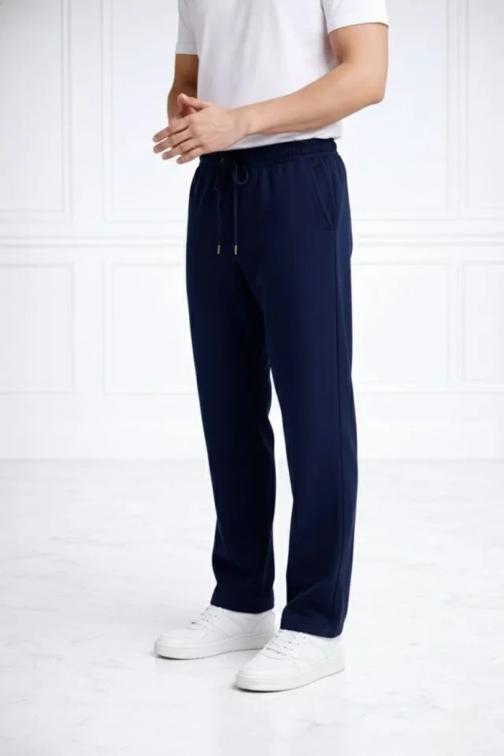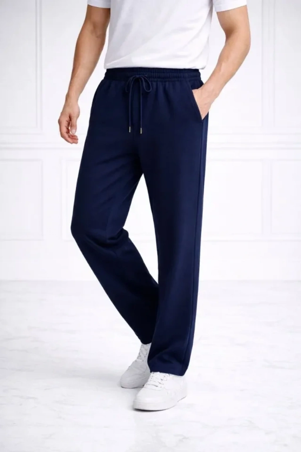 Erkek Düz Paça Beli astikli İpli Günlük por Eşofman Altı Rahat Fit acivert