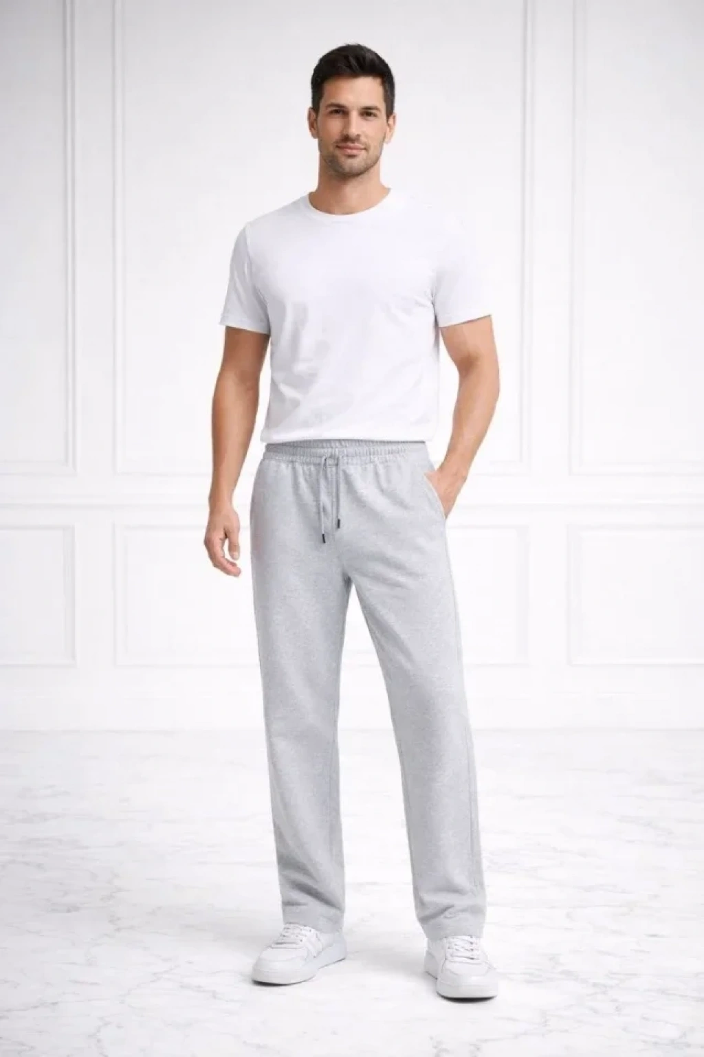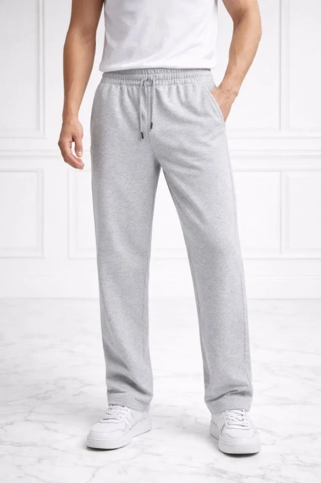 Erkek Düz Paça Beli astikli İpli Günlük por Eşofman Altı Rahat Fit Gri