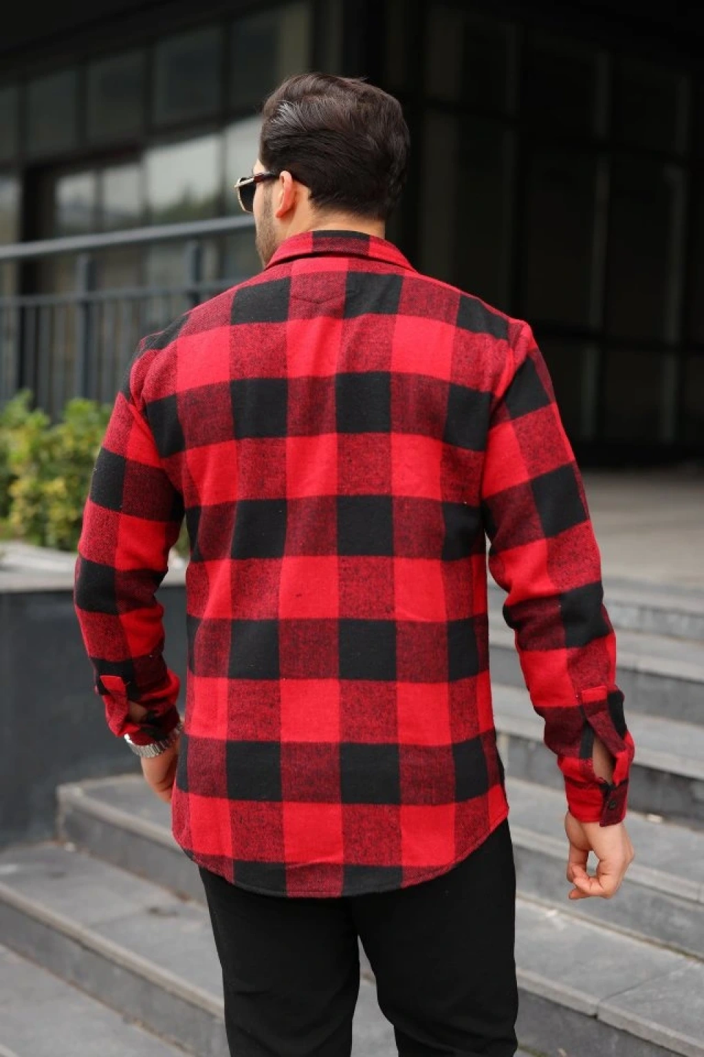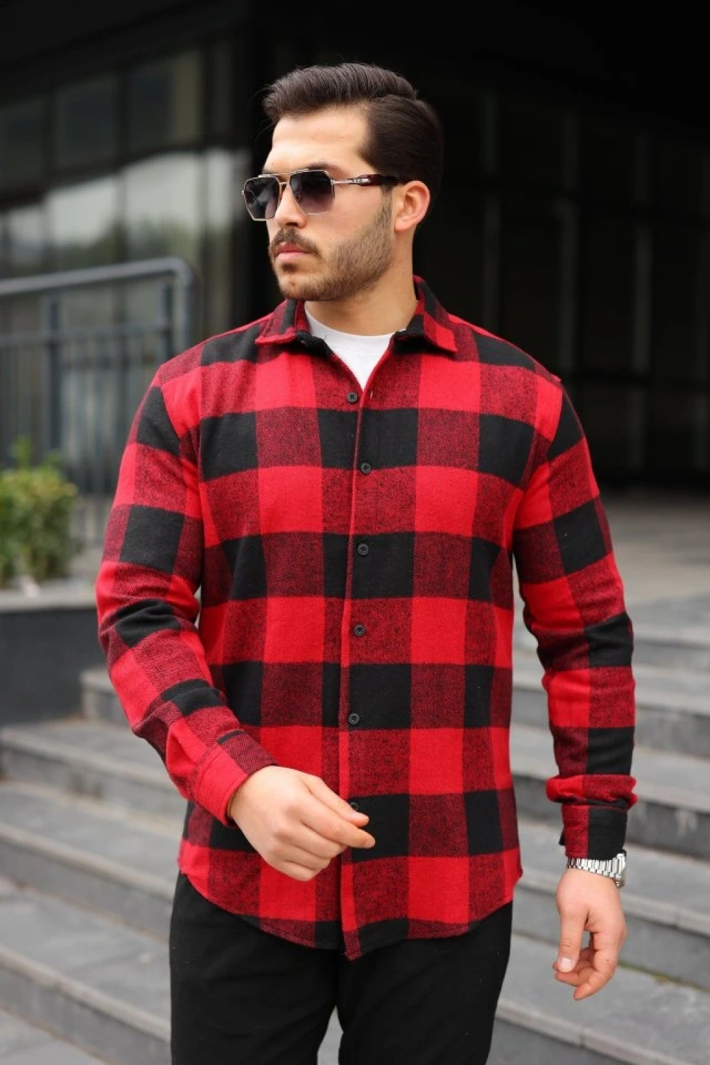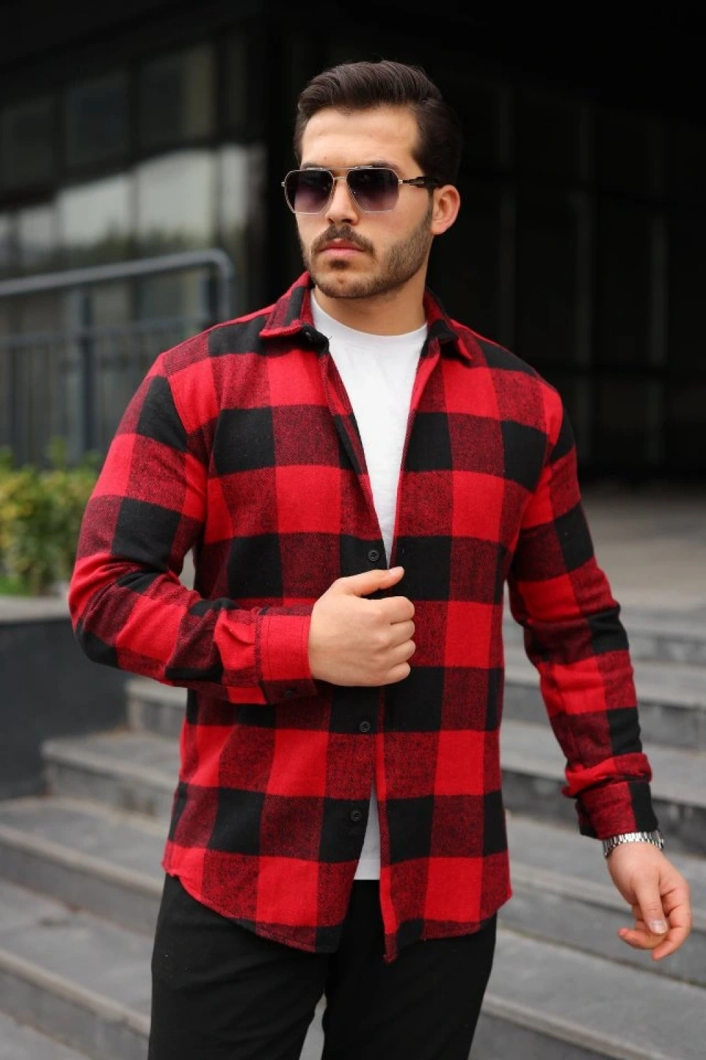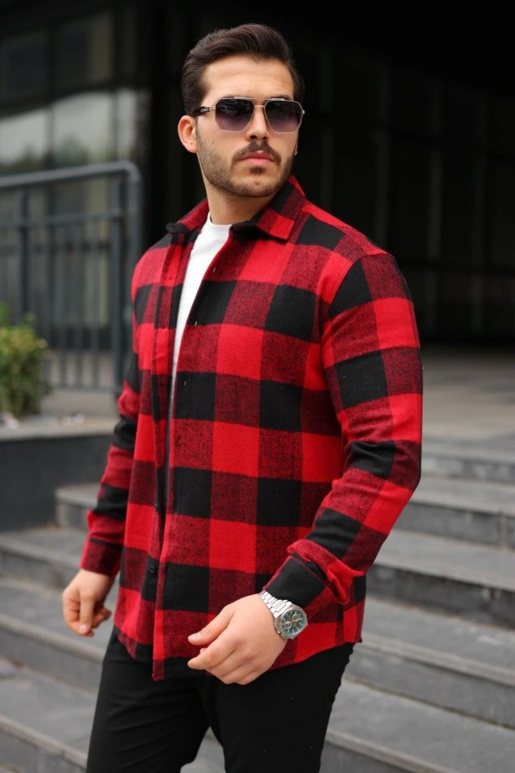 Erkek Waffle Dokuma Açık Yakalı Düğmeli Regular Kalıp 3’lü Gömlek eti iyah, Kırmızı, Beyaz