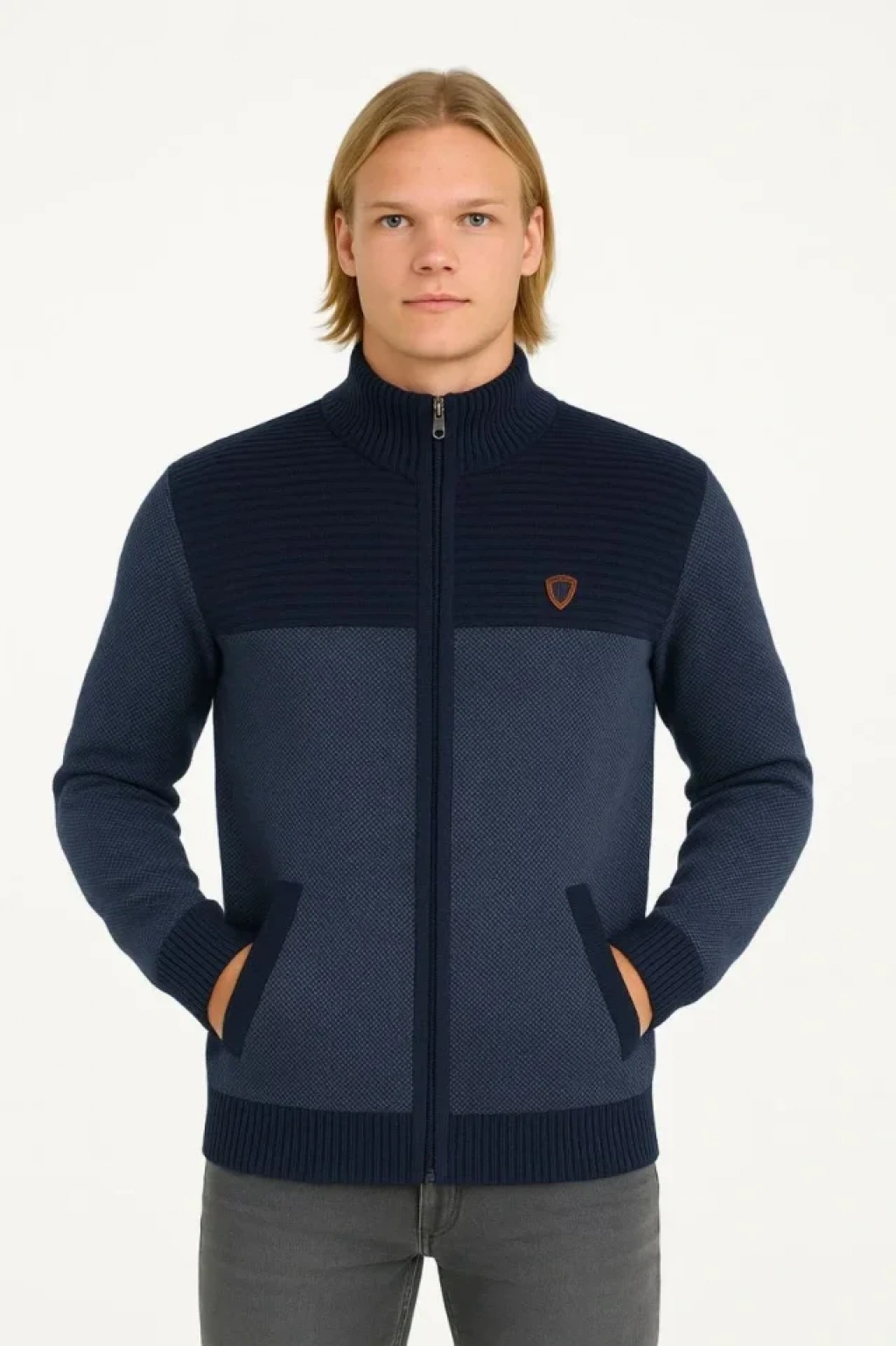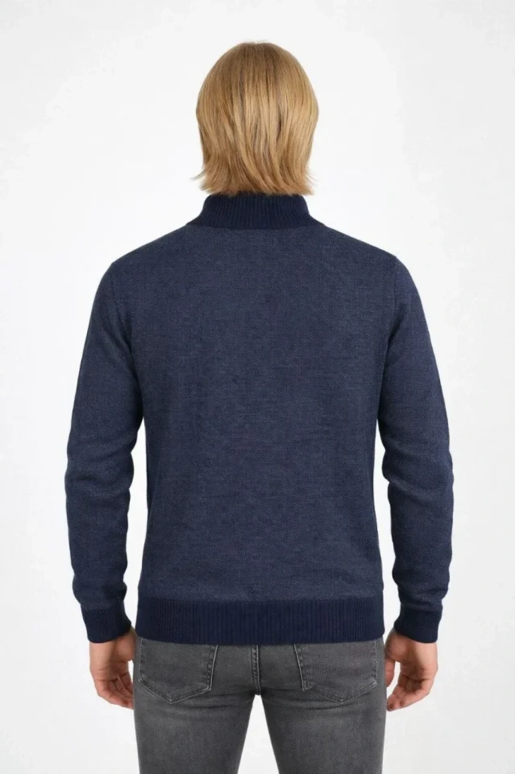 Erkek Fermuarlı Triko Hırka Yüksek Yaka, Cepli, Günlük Şık Rahat Kalıp Triko acivert