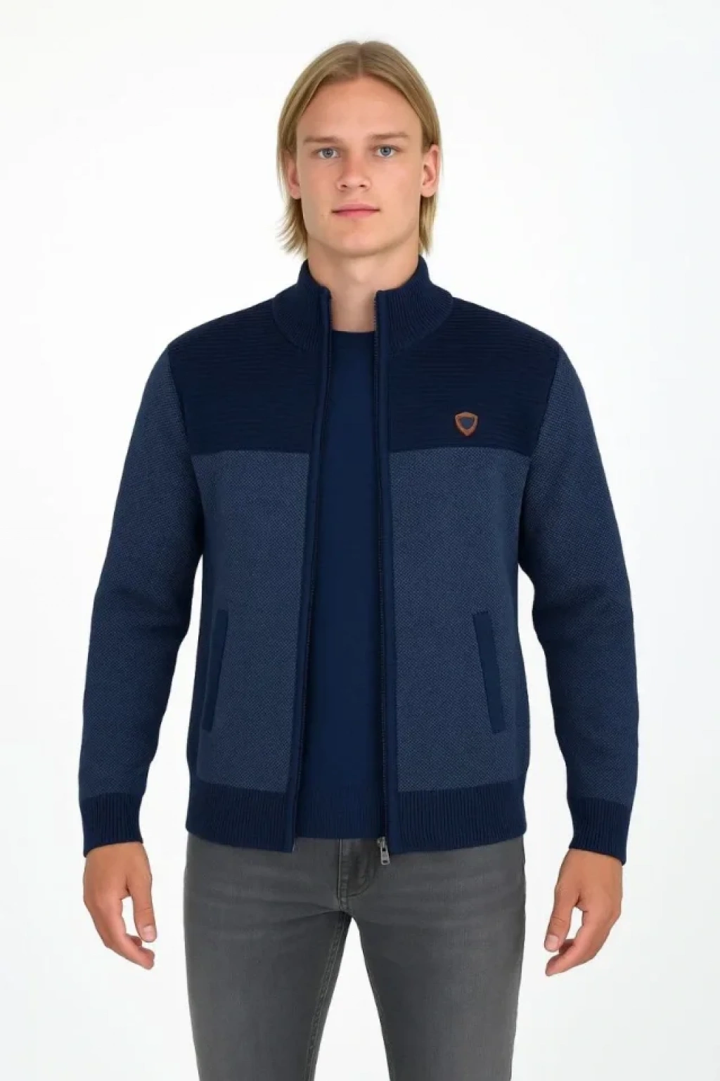 Erkek Tam Fermuarlı Triko Hırka acivert