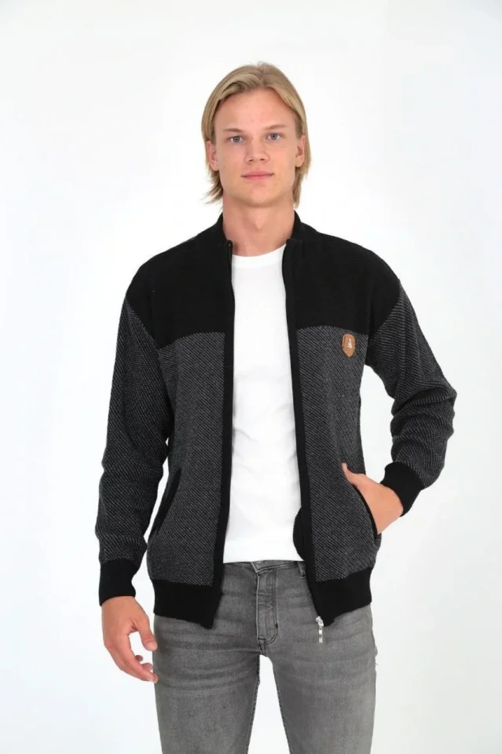 Erkek Tam Fermuarlı Triko Hırka iyah