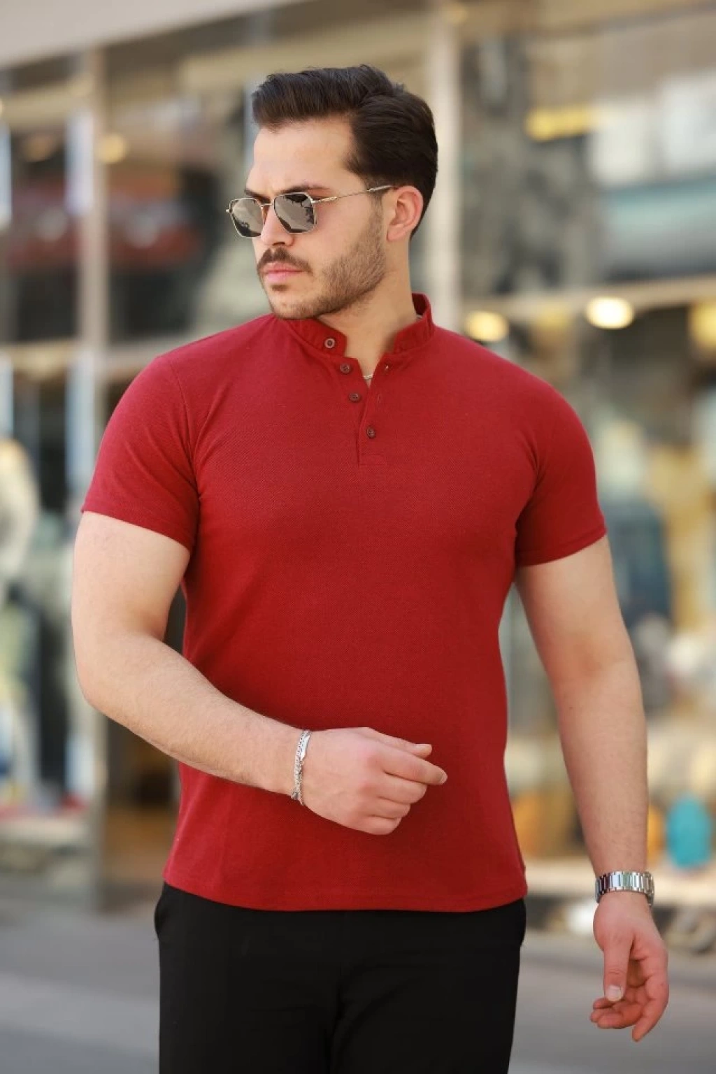Erkek Hakim Yaka Dokuma Pamuklu Kumaş Kısa Kollu Tshirt