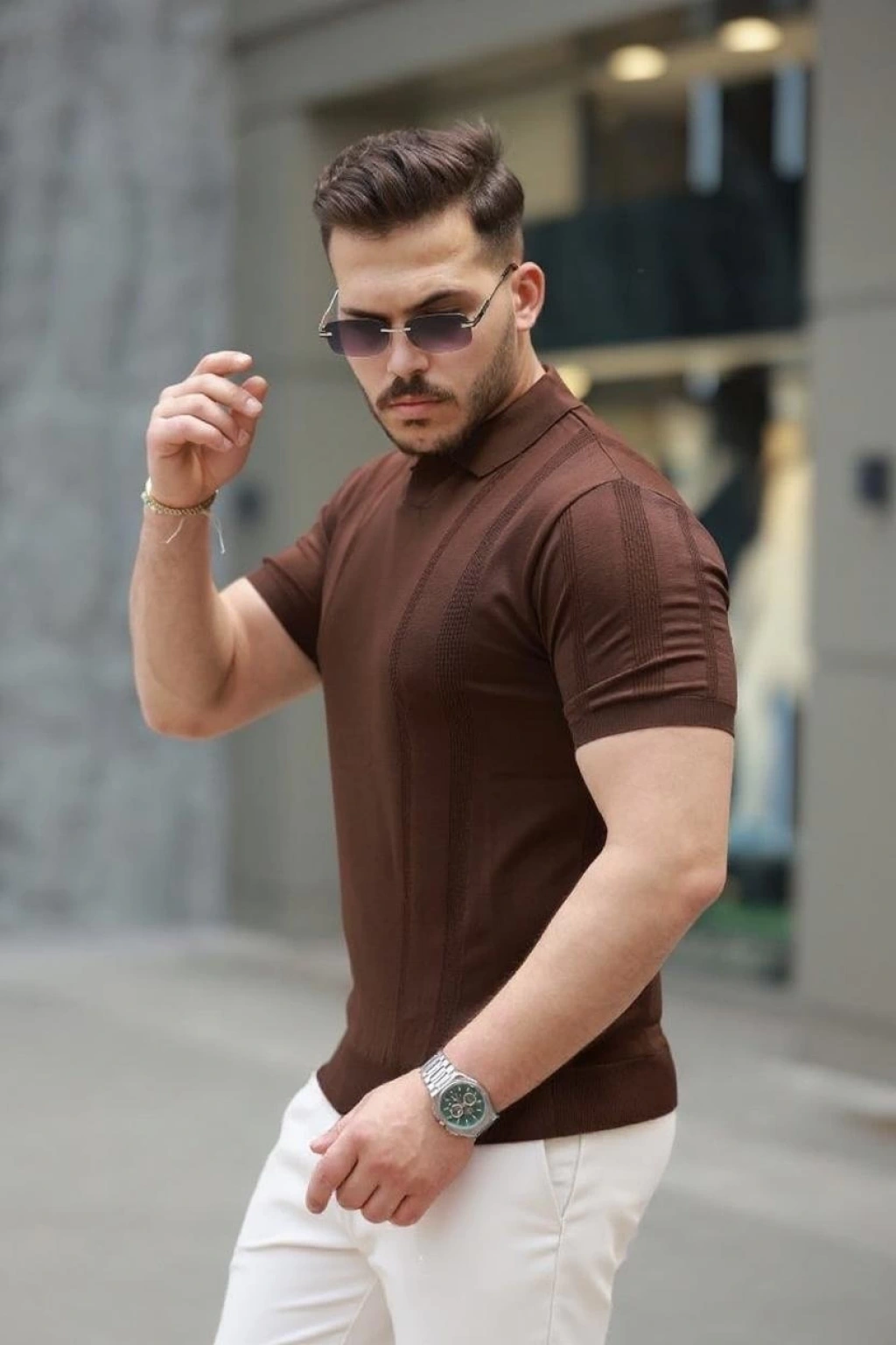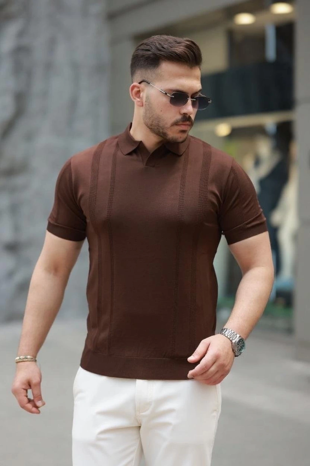 Erkek Kısa Kollu Bisiklet Yaka Triko Tişört