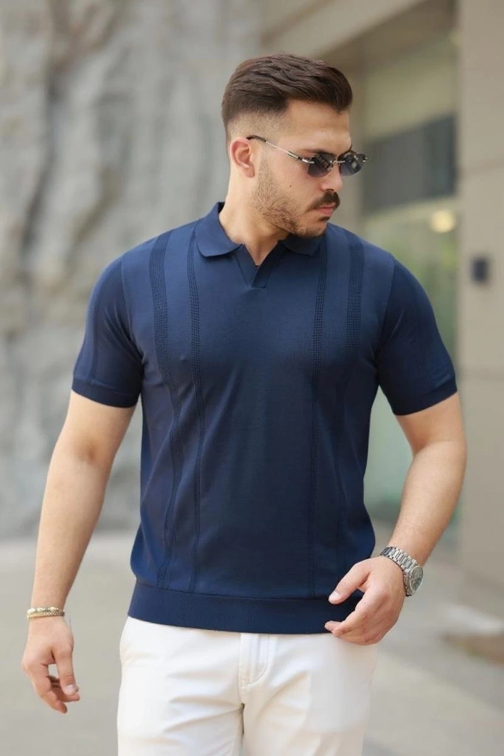 Erkek Kısa Kollu Bisiklet Yaka Triko Tişört