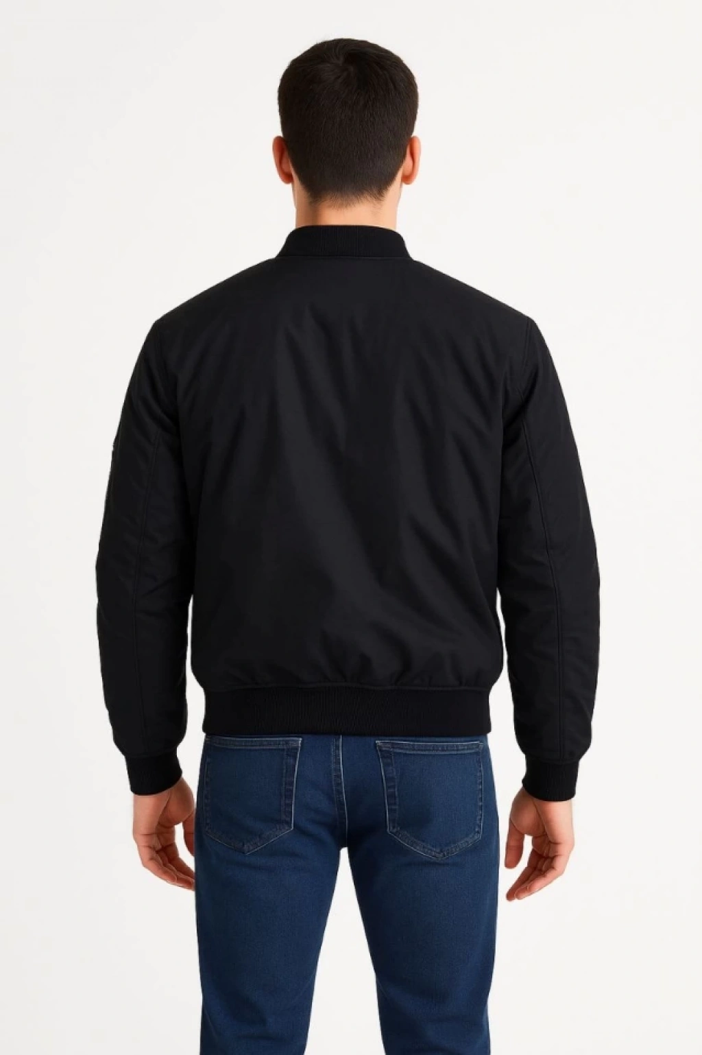 Erkek Içi Astarlı Fermuarlı Bomber ont Ceket iyah