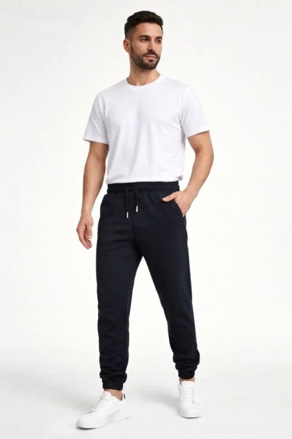 Erkek Üç İplik Basic Eşofman Boru Paça İpli Pantolon Lacivert