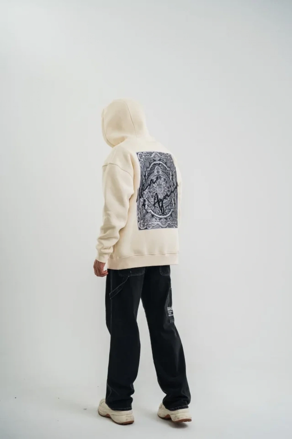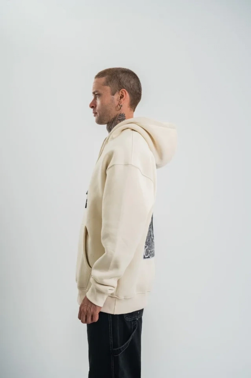Erkek Kapşonlu Double Oversize Dijital Patchli weathirt Krem