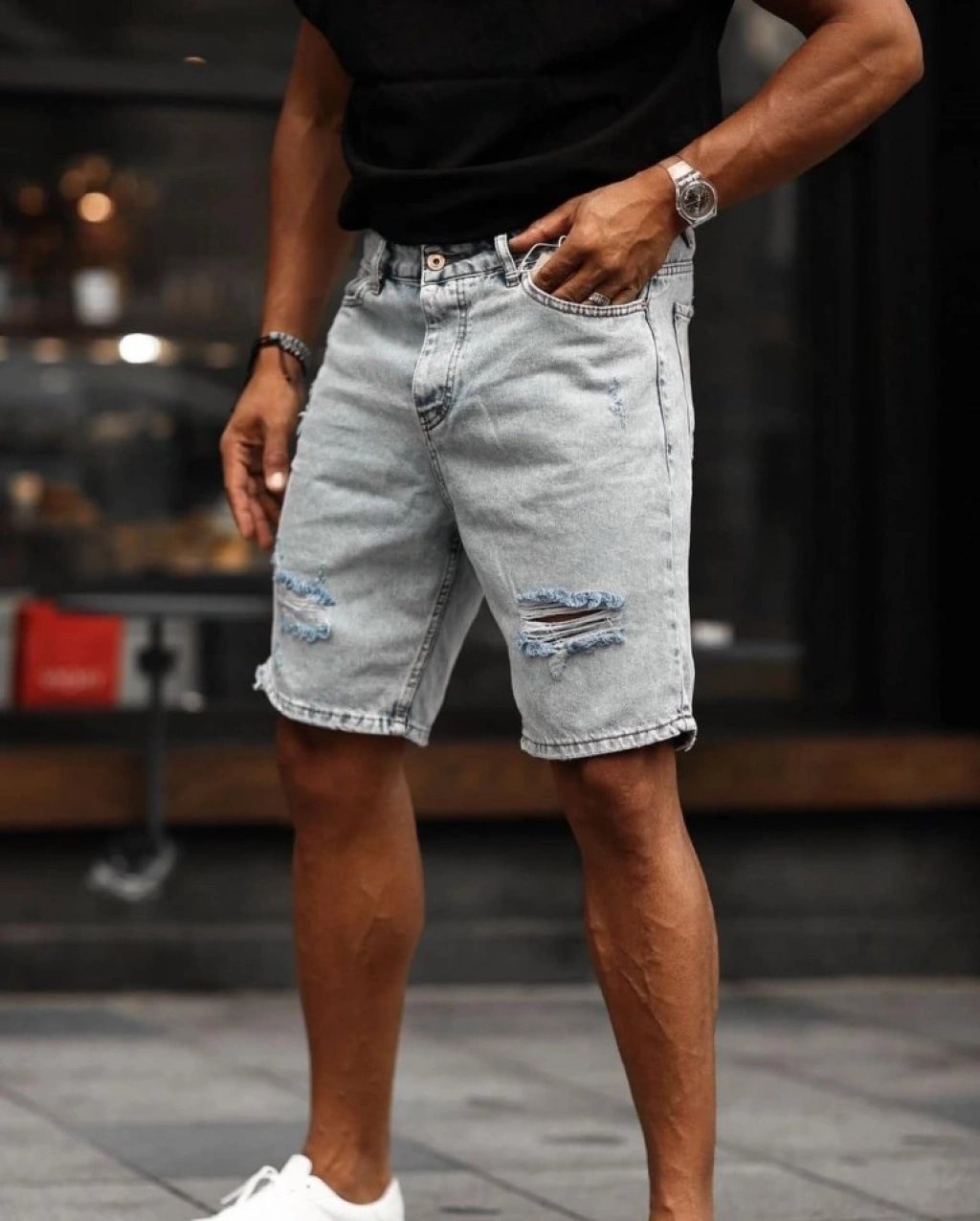 Erkek Yırtık Detaylı Kot Şort