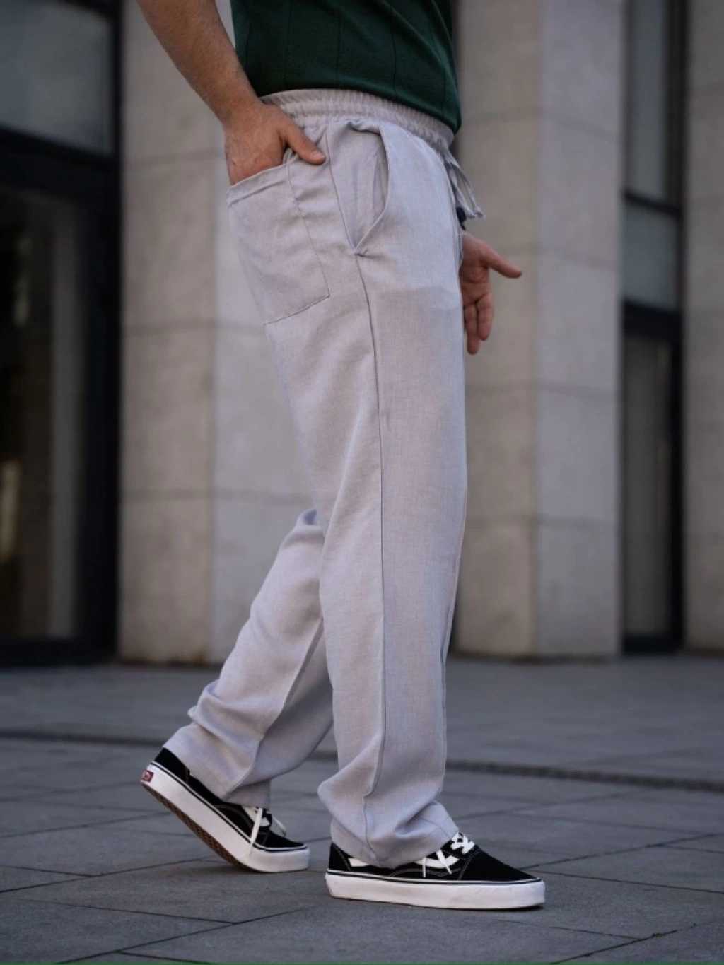 Erkek Keten Cepli Çıma Dikişli Jogger Buggy Pantalon Rahat Kalıp Gri