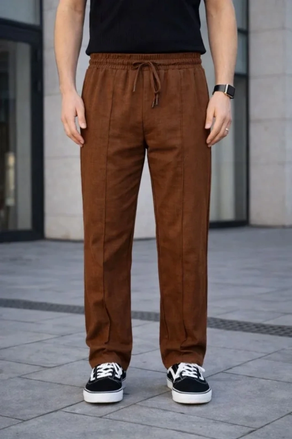 Erkek Keten Cepli Çıma Dikişli Jogger Buggy Pantalon Rahat Kalıp Kahverengi