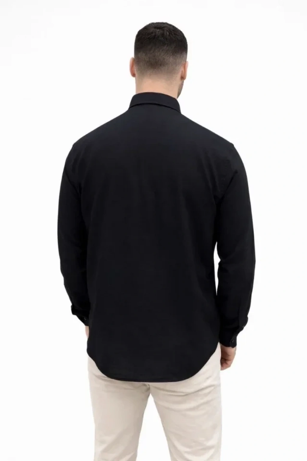 Erkek KETEN Kumaş Oversize Uzun Kollu Rahat Kalıp Gömlek iyah