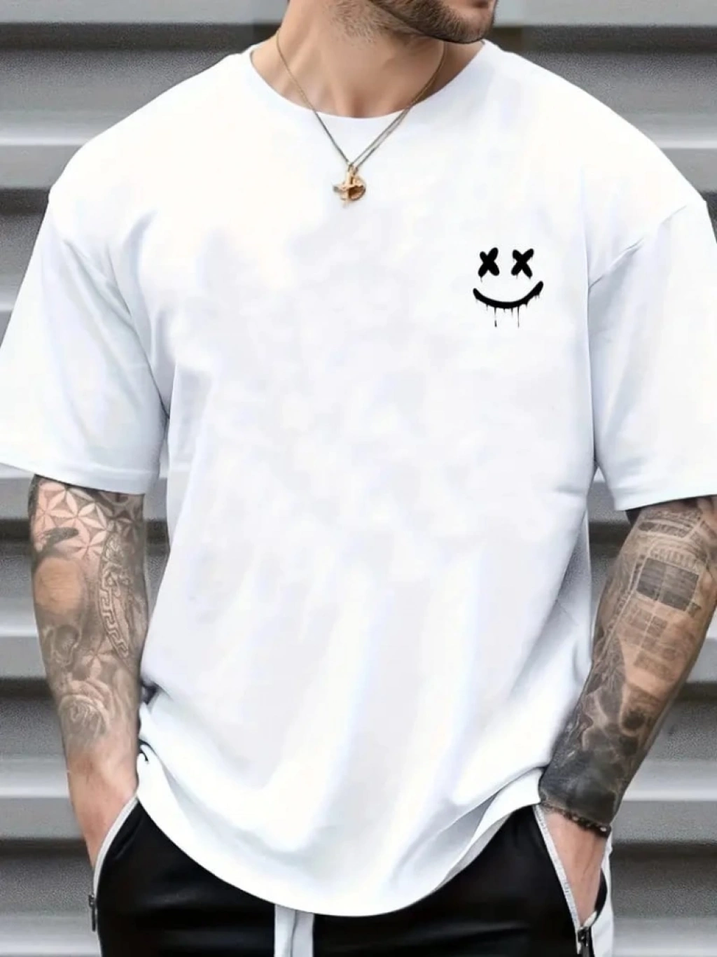 Erkek Desenli Kısa Kollu Triko Tişört %100 Pamuk Akrilik