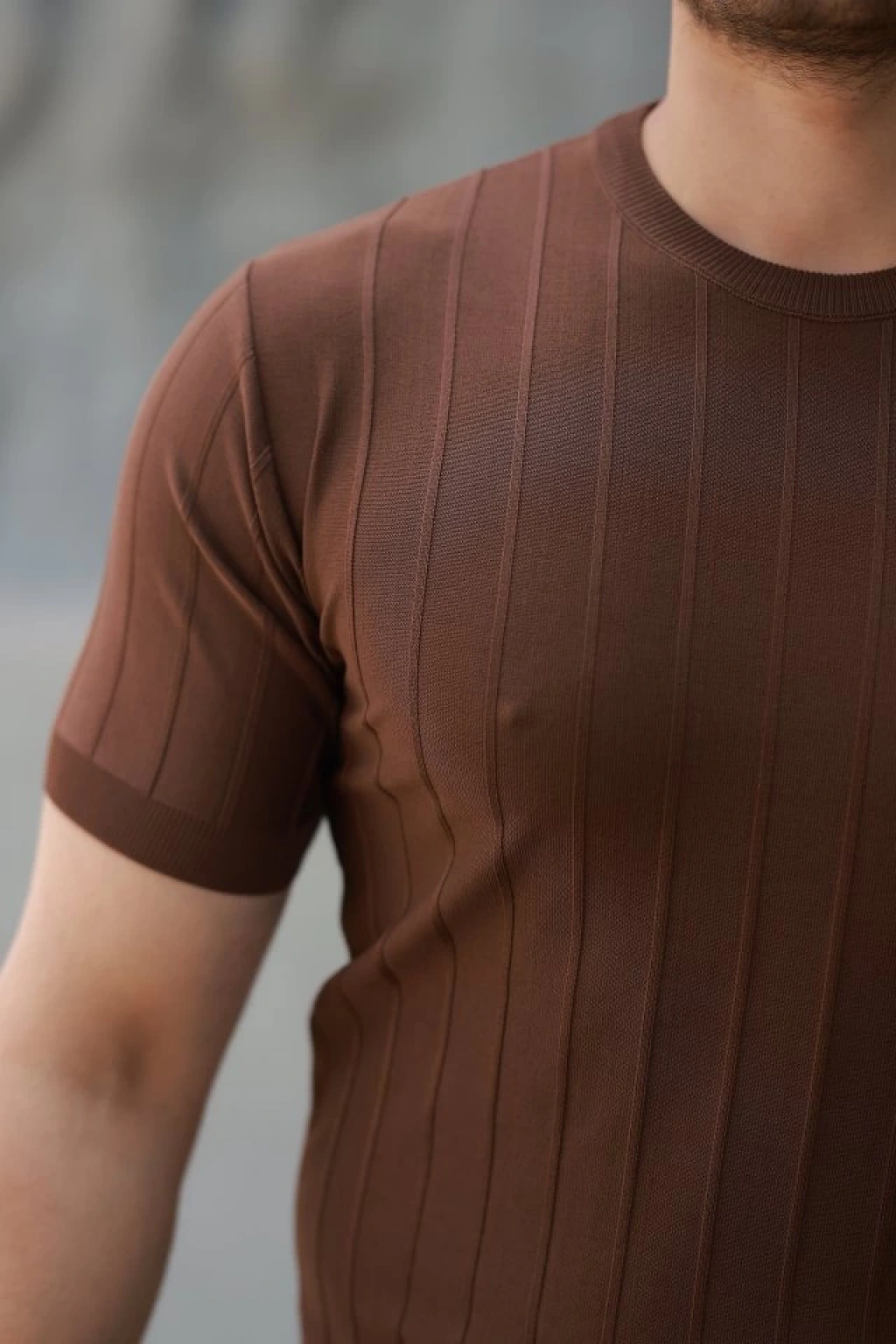 Erkek Kısa Kollu Bisiklet Yaka Triko Tişört