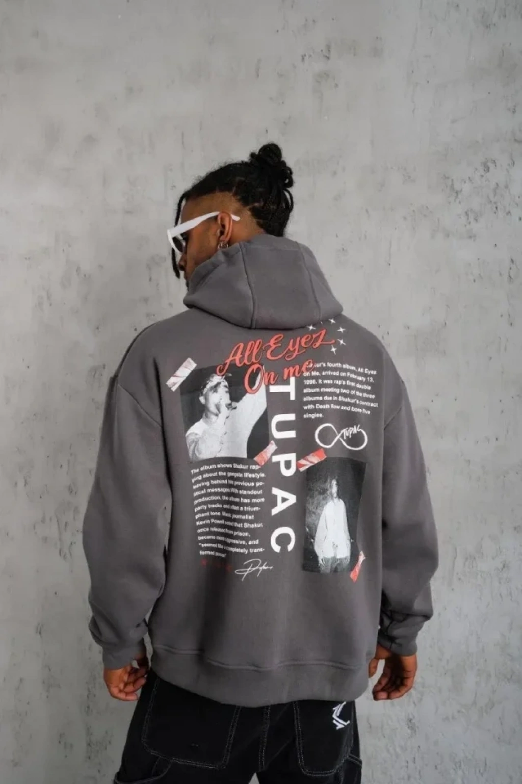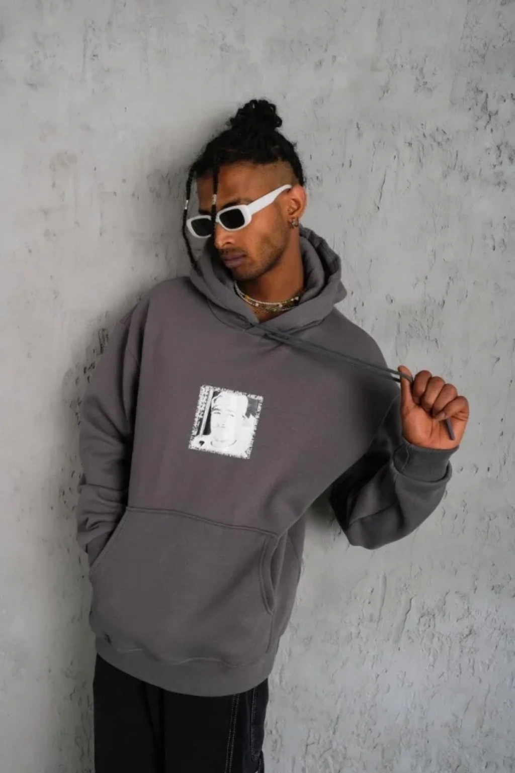 Erkek Ön Arka Baskılı Kapşonlu weat Gri