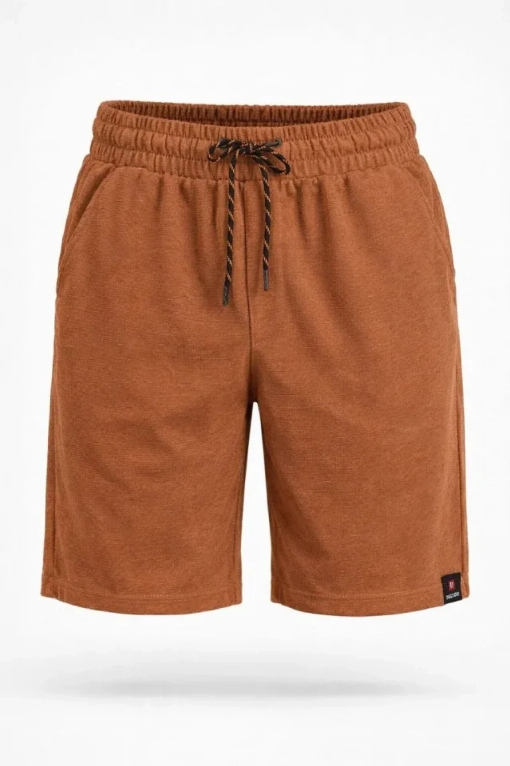 Erkek Otoban Dokuma Şort Beli Lastikli Bağcıklı, Cepli, Rahat Kesim Günlük Yazlık Şort - Kahverengi