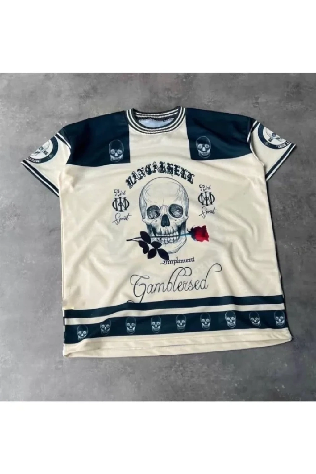Erkek Oversize Dijital Baskılı Kuru Kafa Tshirt Beyaz