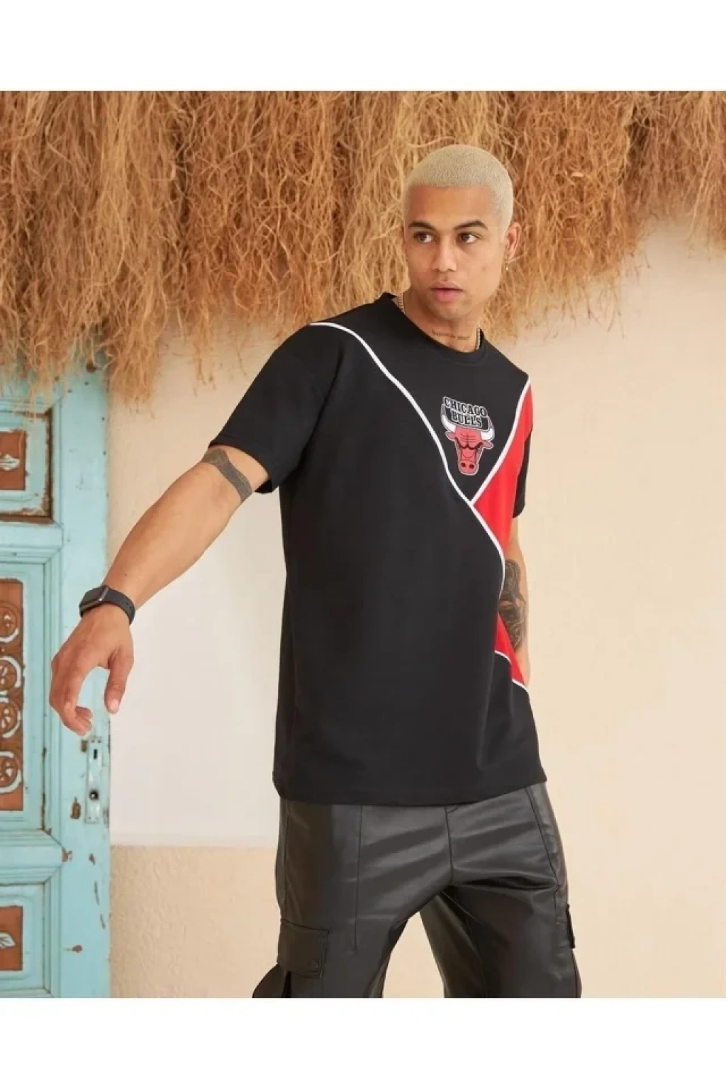 Erkek Parçalı Baskılı Oversize Tshirt iyah