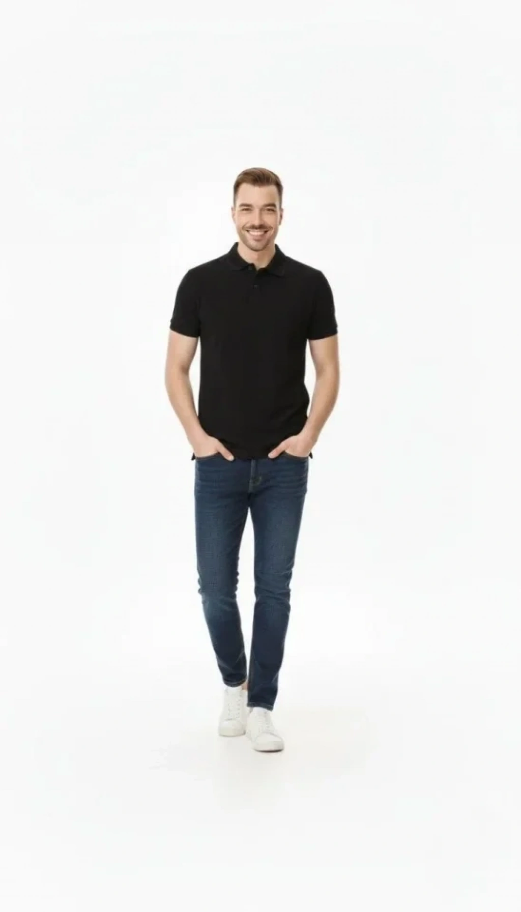 Erkek Triko Kumaş Yakalı Düğmesiz Açık Yaka Fitilli Kısa Kollu Regular Fit Tişört Tshirt iyah