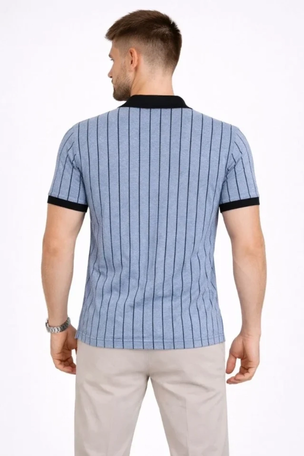 Erkek Polo Yaka Çizgili Tişört Kısa Kol Düğmeli Yazlık T-Shirt - Bebek Mavisi