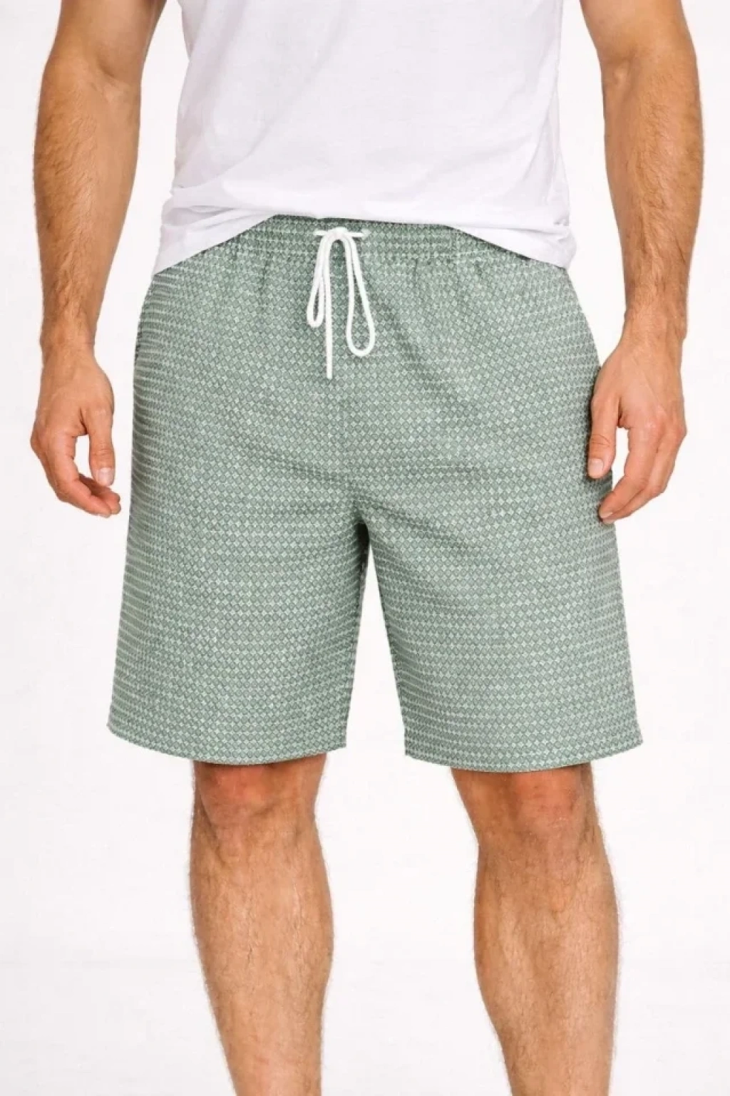 Erkek Pötikareli Şort – Beli Lastikli Bağcıklı, Cepli, Rahat Kesim Günlük Yazlık Şort - Mint Yeşili