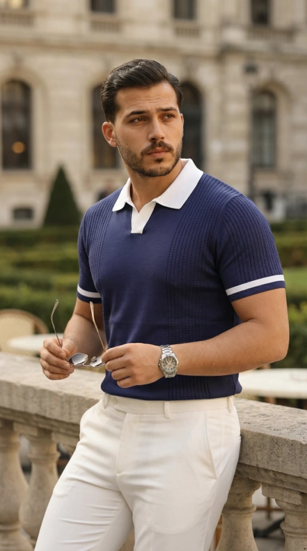 Erkek Desenli Kısa Kollu Triko Tişört %100 Pamuk Akrilik