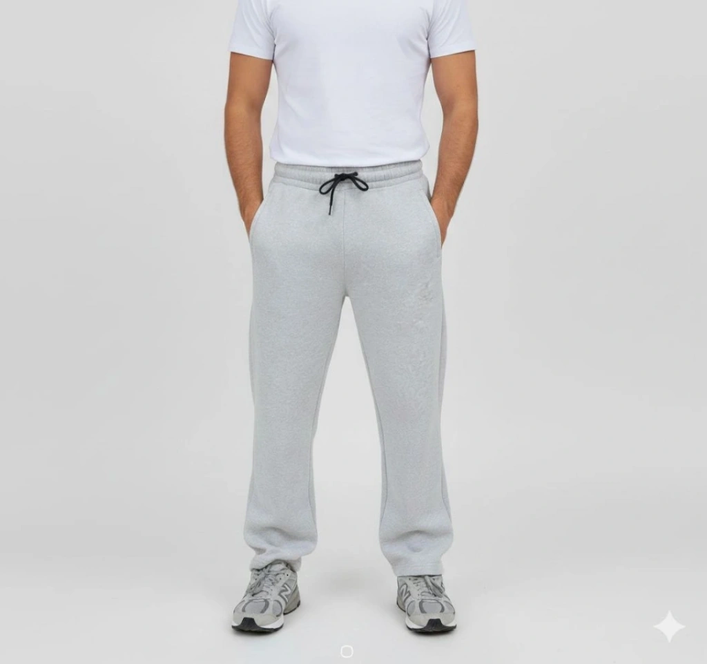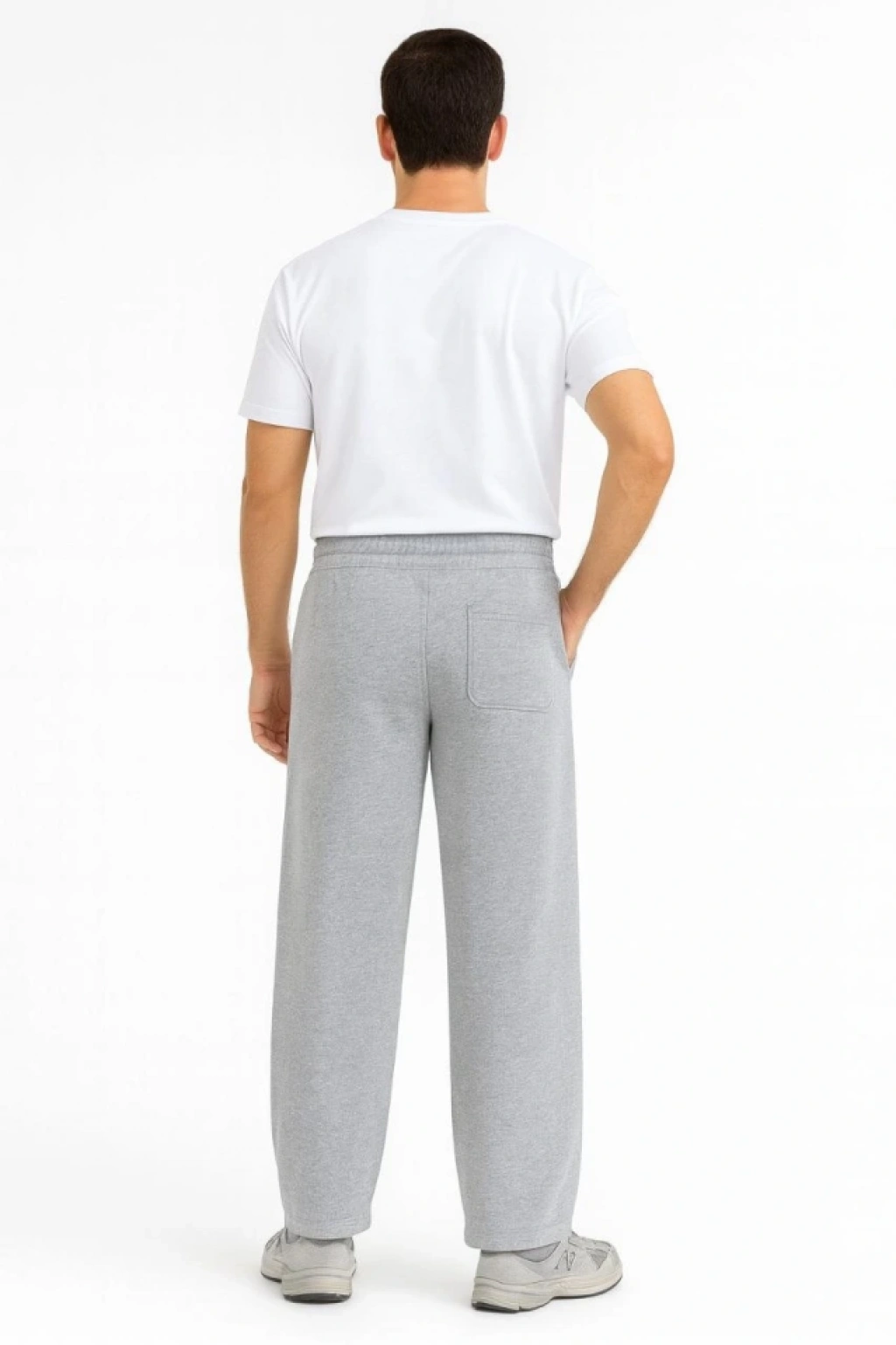 Erkek Üç Iplik Kışlık Pamuklu Ovarsize Bağcıklı Düz Paça Cepli Eşofman Altı por Rahat odel Gri