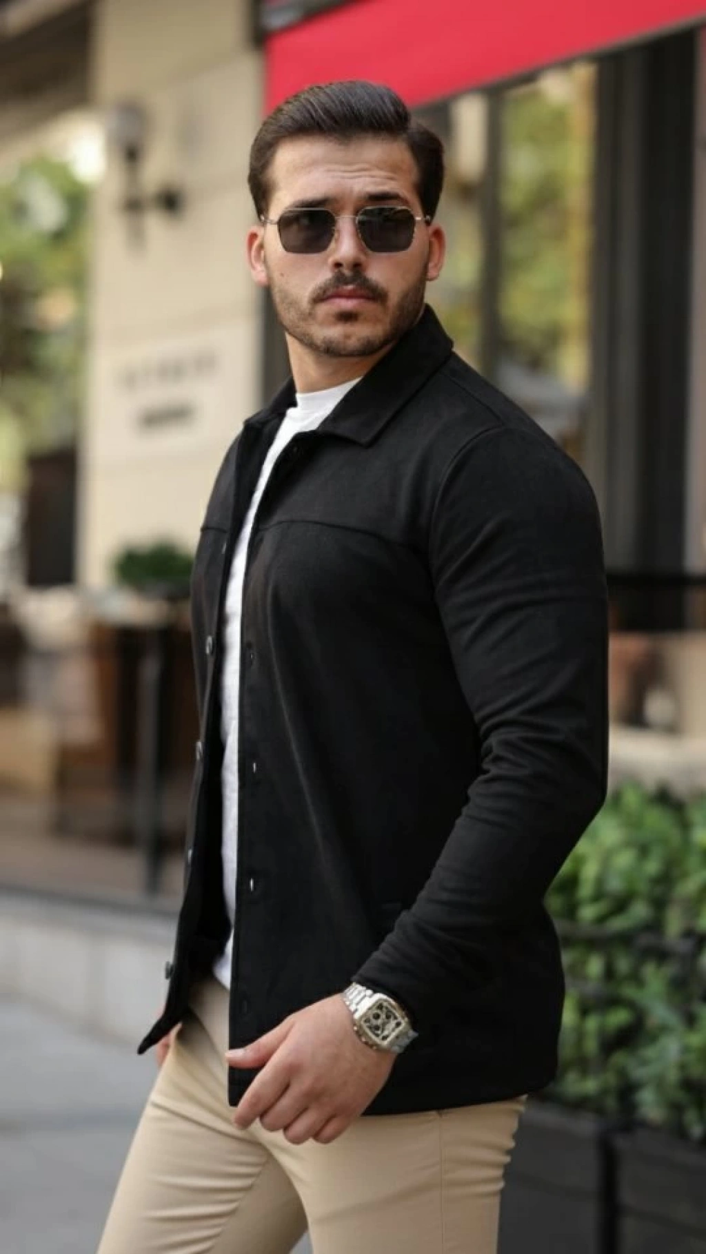 Yıldırım Baskılı Uzun Kol Bomber Ceket iyah