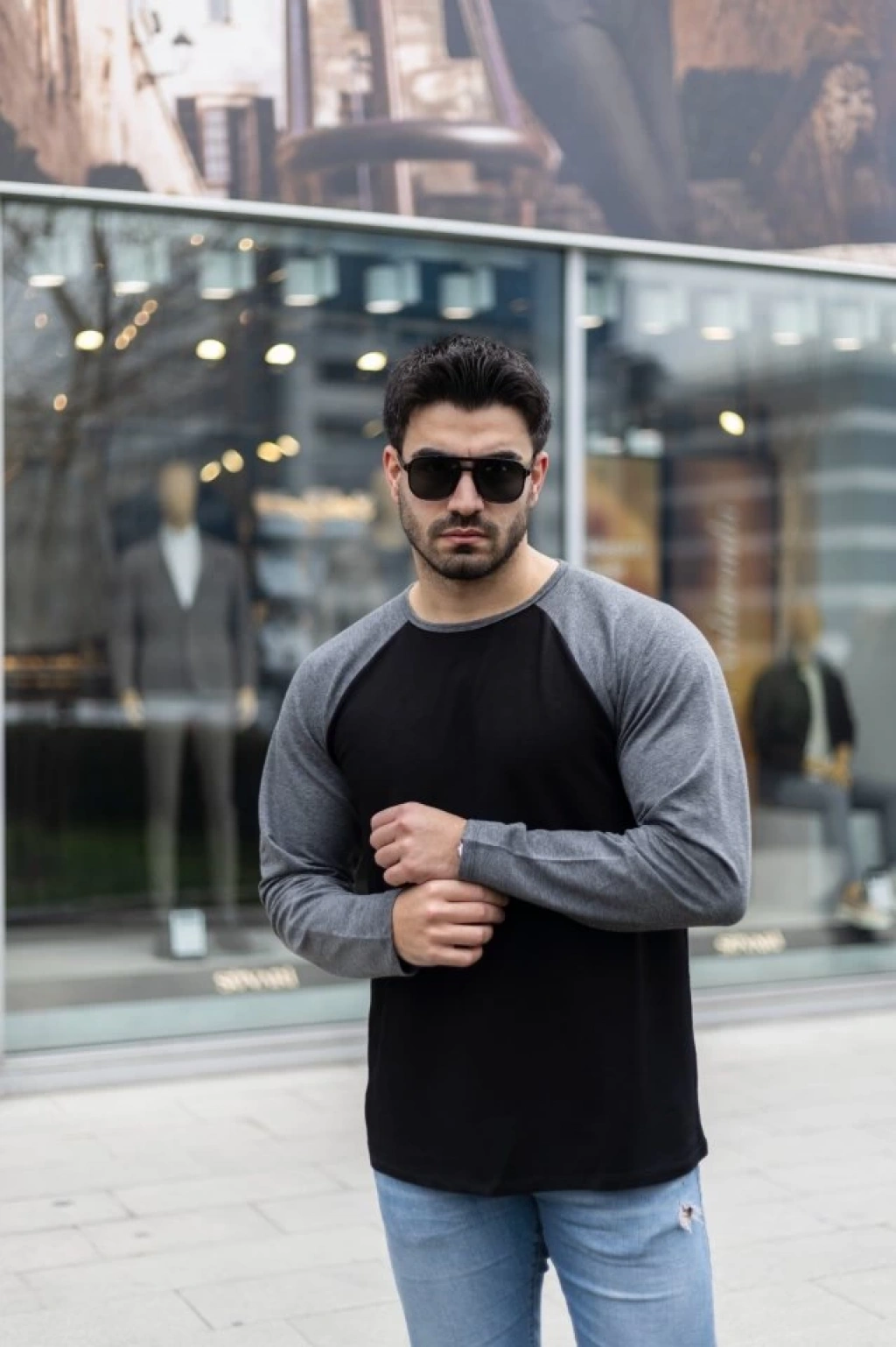 Erkek Uzun Kollu Bisiklet Yaka Black Logolu Iki Iplik Bluz