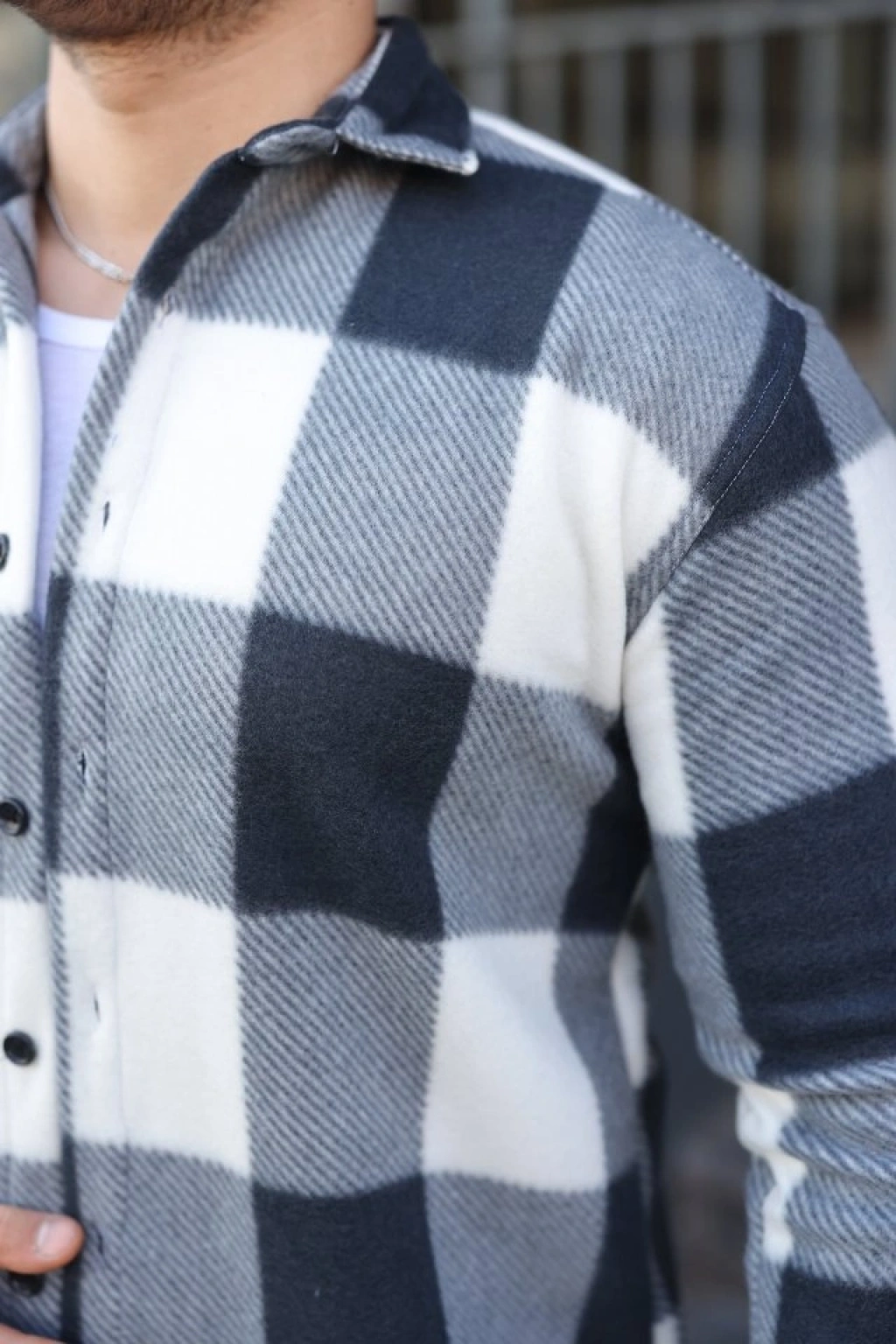 Erkek Waffle Dokuma Açık Yakalı Düğmeli Regular Kalıp 2’li Gömlek eti acivert Gri