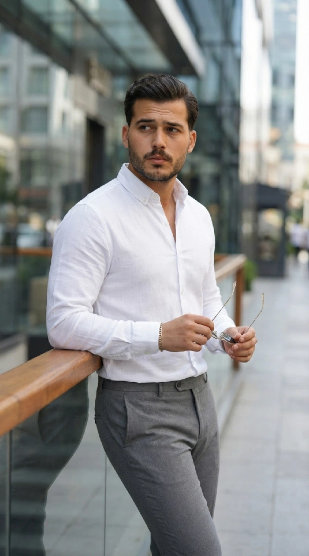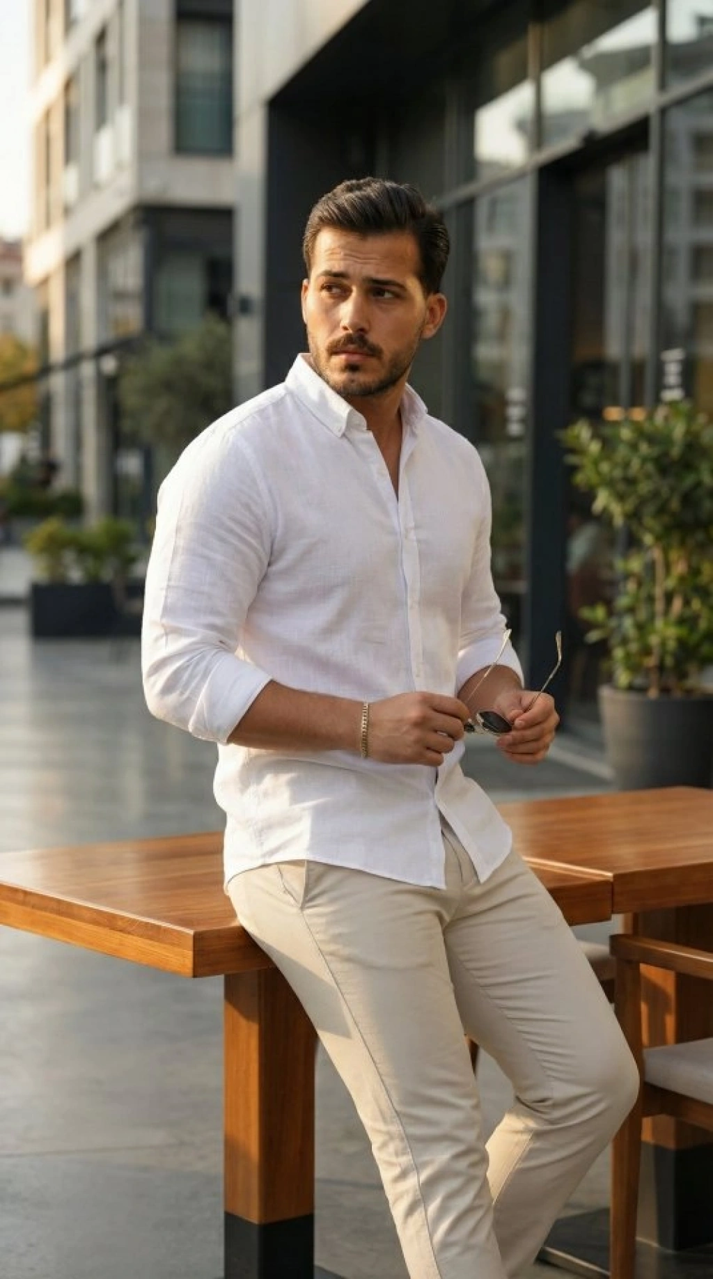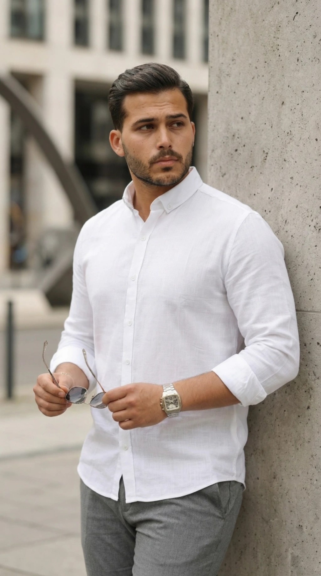 Erkek Uzun Kollu Rahat Keten Gömlek