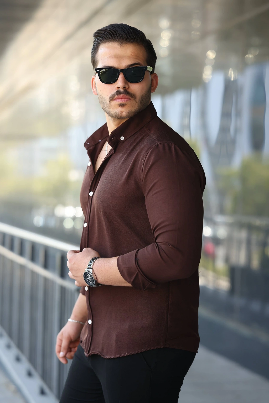 Erkek Pelüş Polar Hırka Gömlek – Yakalı, İlik Düğmeli, Göğüs Cepli, Yumuşak Dokulu Kışlık Regular Fit Rahat Günlük odel Açık Kahve
