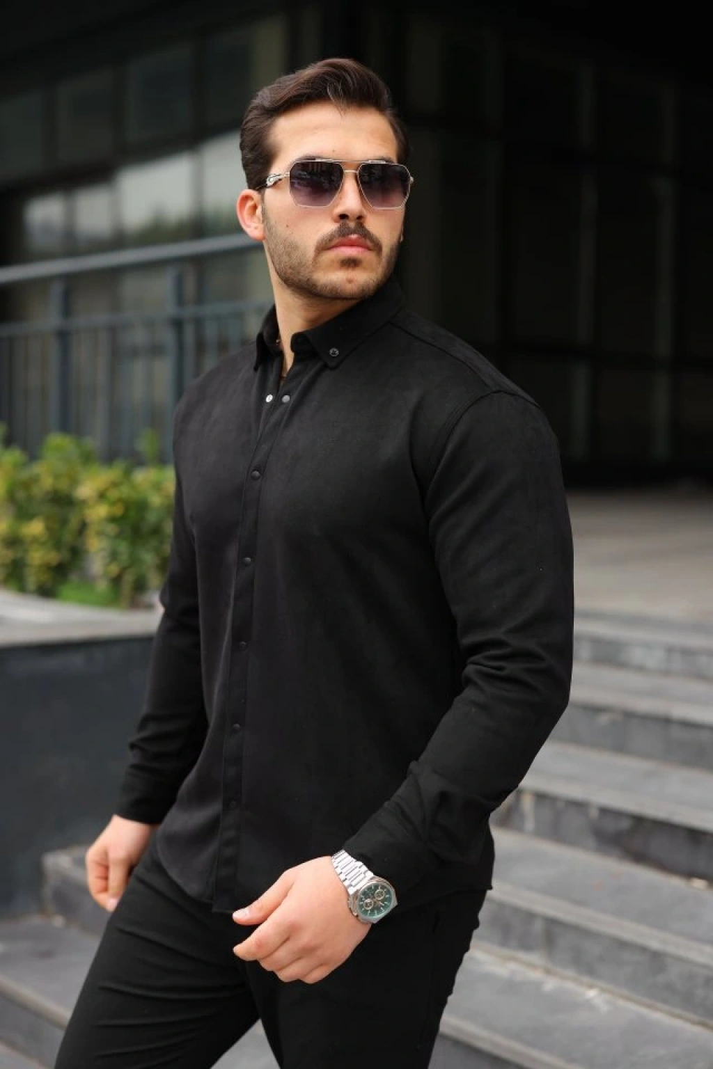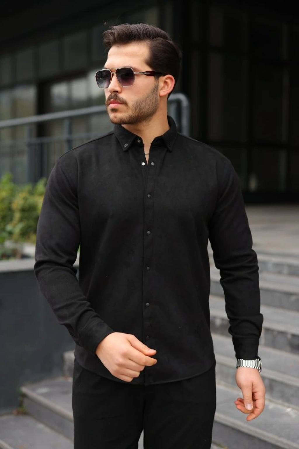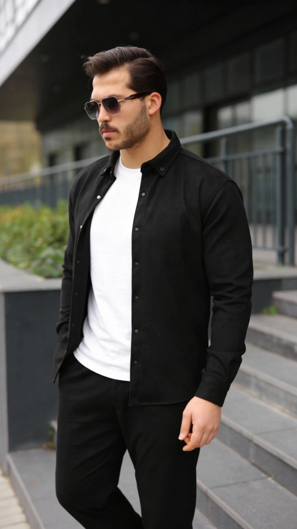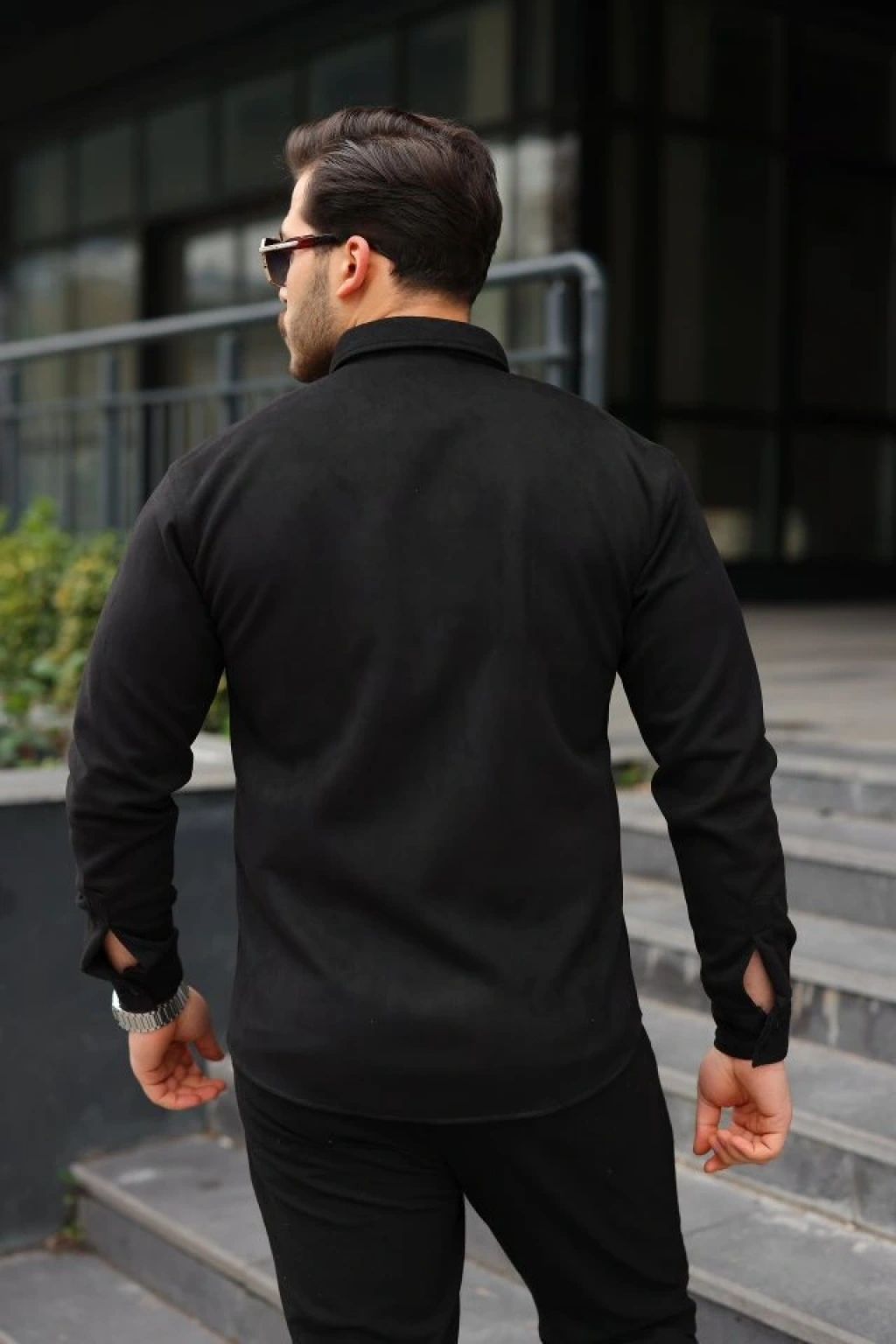 Erkek Waffle Dokuma Açık Yakalı Düğmeli Regular Kalıp 2’li Gömlek eti iyah aks avisi