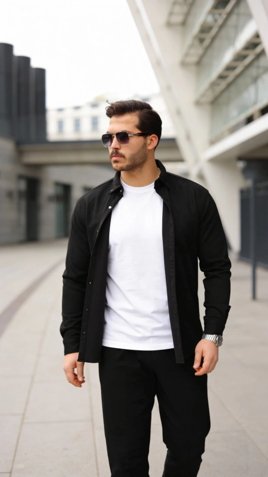 Erkek Waffle Dokuma Açık Yakalı Düğmeli Regular Kalıp 2’li Gömlek eti iyah Beyaz