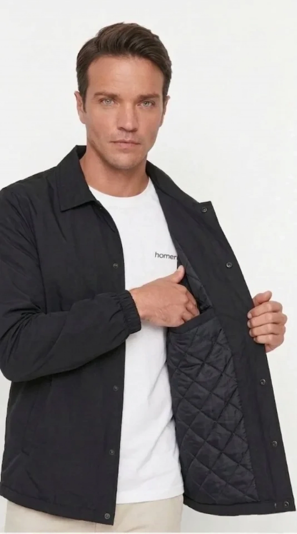 Erkek Yağmur İtici İç Astarlı Çıtçıtlı İç Cepli Dış Cepli evsimlik Ceket iyah