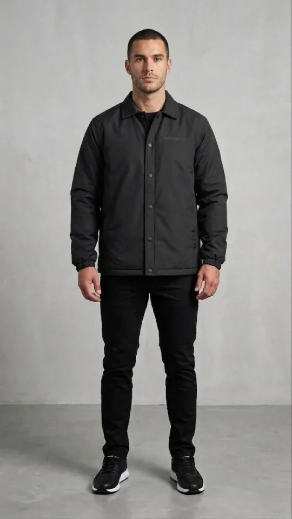 Erkek Yağmur İtici İç Astarlı Çıtçıtlı İç Cepli Dış Cepli Mevsimlik Mont - Siyah