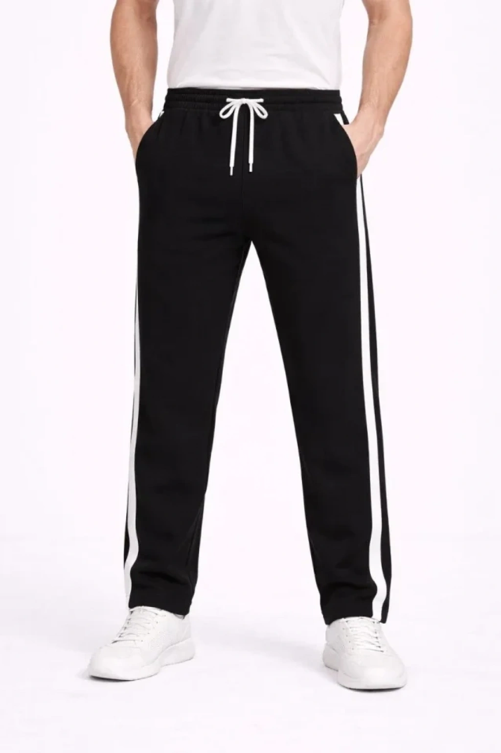 Erkek Yandan Şeritli Boru Paça Eşofman Altı 3 Iplik Pamuklu Eşofman iyah