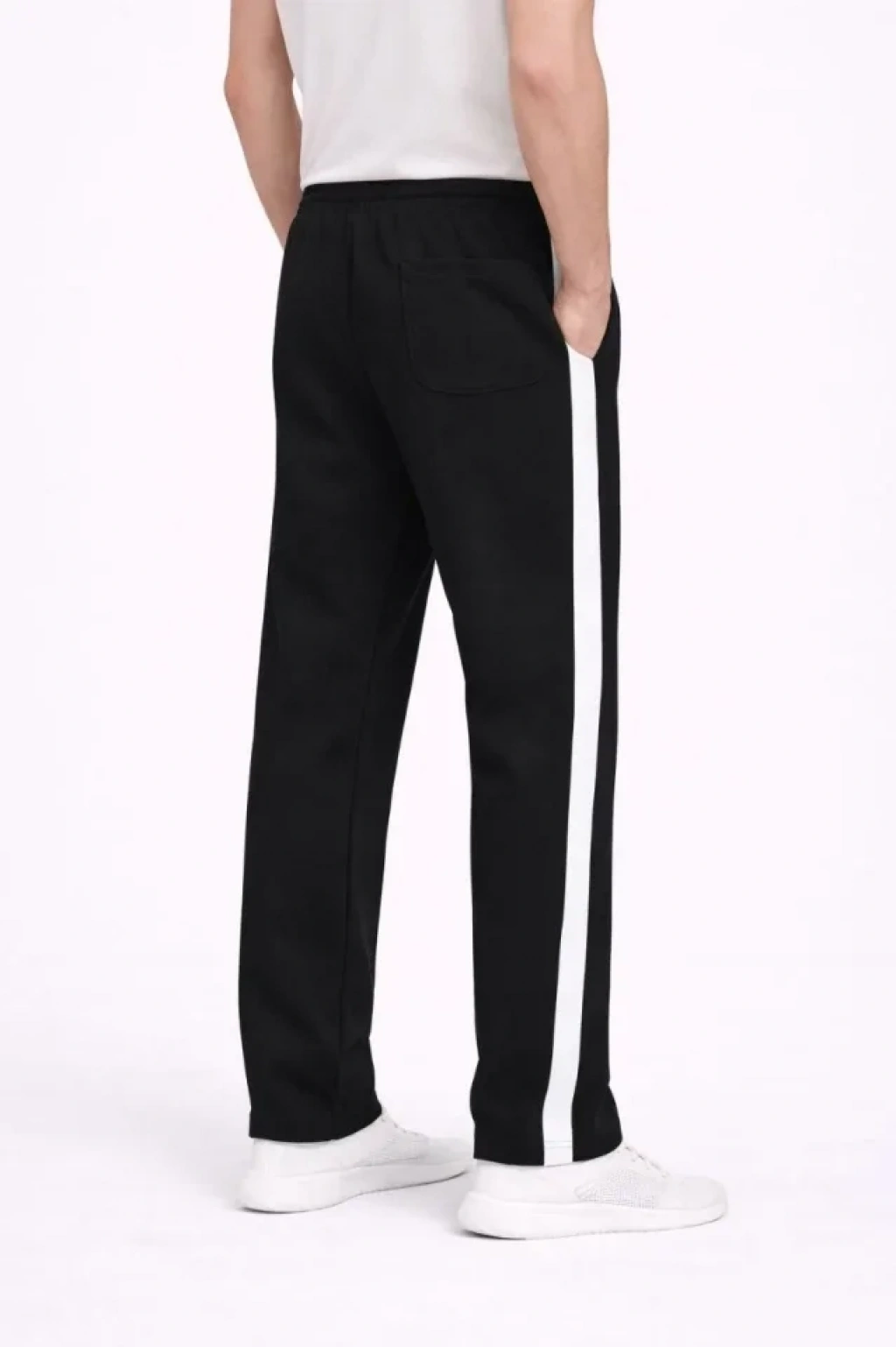 Erkek Üç İplik Kışlık Pamuklu Yandan Garneli Kalın Şeritli Cepli Eşofman Altı iyah