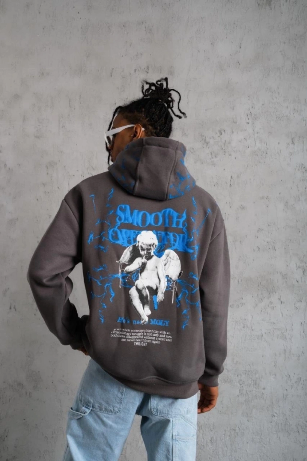 Erkek Yıldırım Baskılı Kapşonlu weatshirt Gri