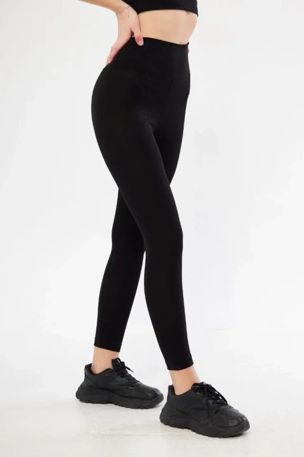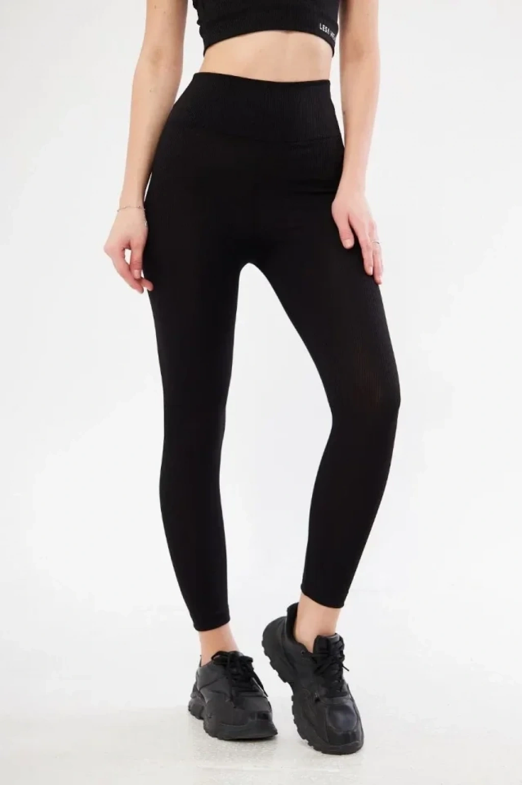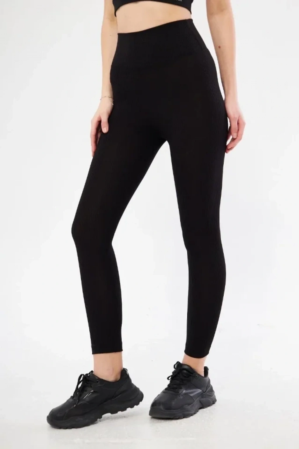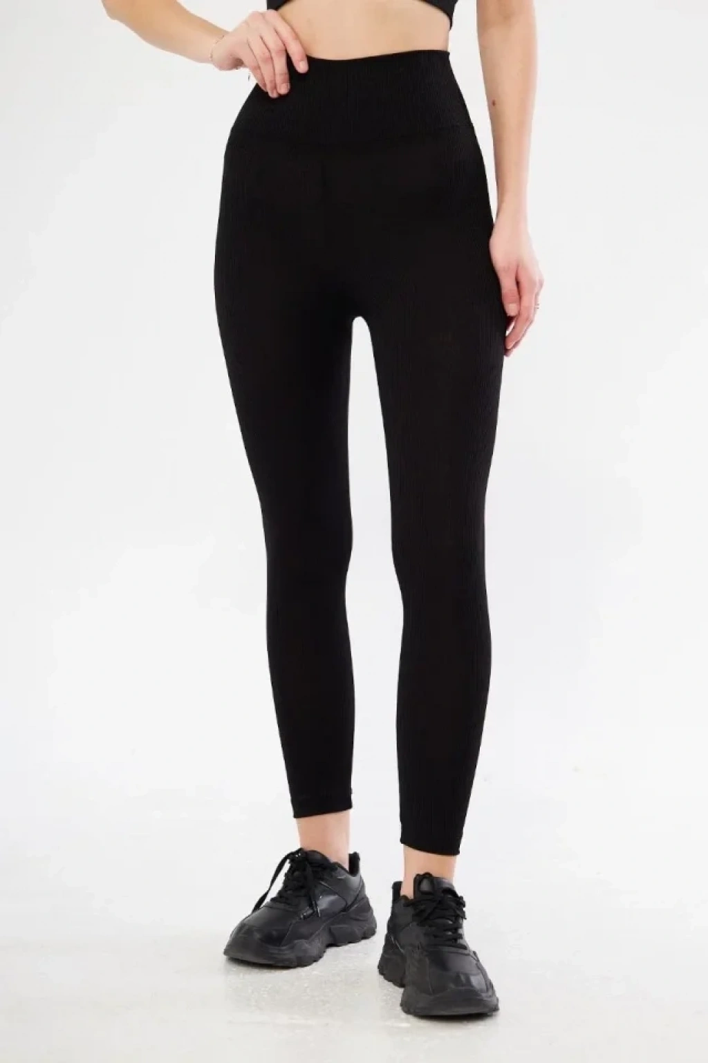 Fitilli Full Likralı Yüksek Bel Toparlayıcı Tayt Günlük Ve Spor Kullanım - Siyah