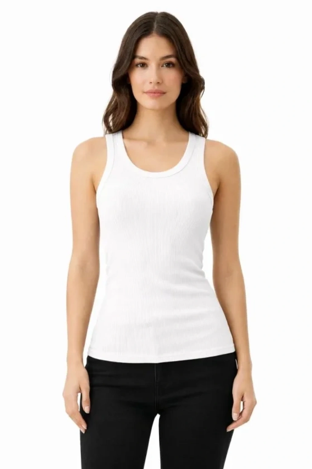 Fitilli ikralı Kaşkorse Atlet Vücuda Oturan Basic Şıklık Beyaz