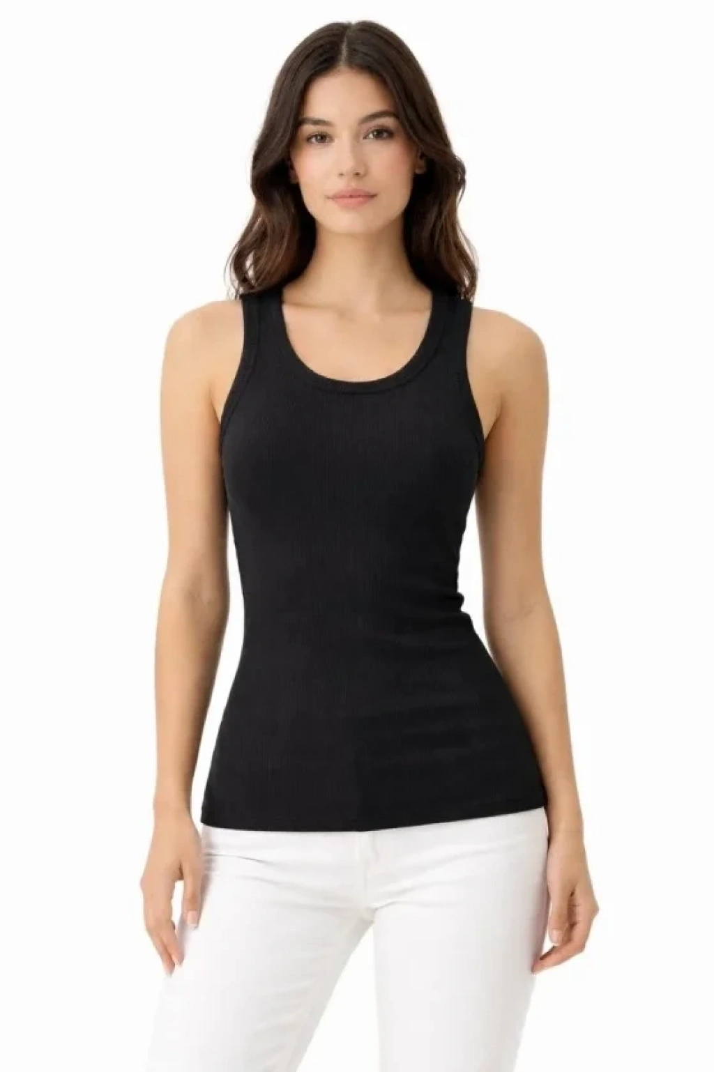 Fitilli Likralı Kaşkorse Atlet Vücuda Oturan Basic Şıklık - Siyah