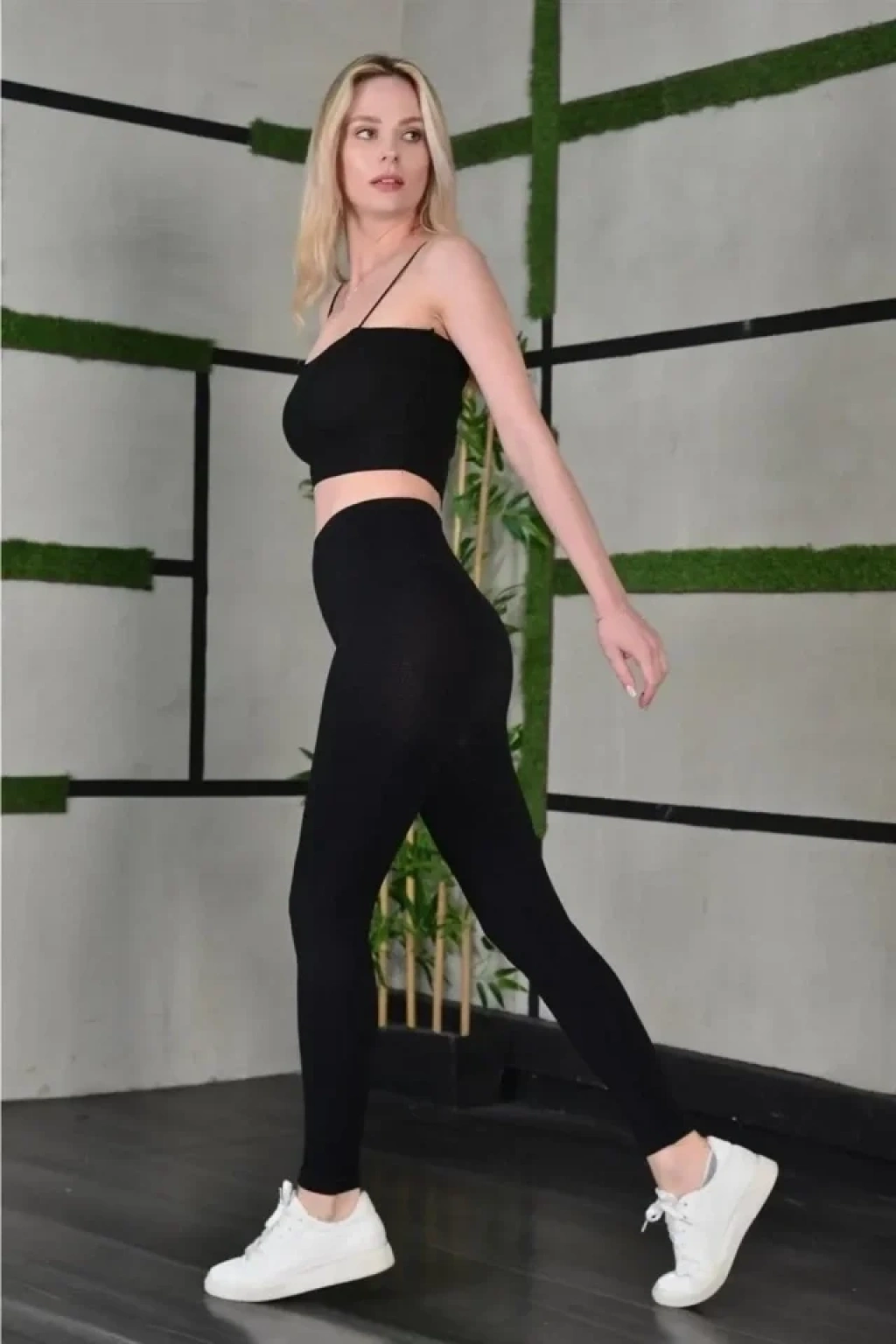 Full Likra Extra Toparlayıcı Yüksek Bel Dar Kalıp Günlük Spor Tayt - Siyah