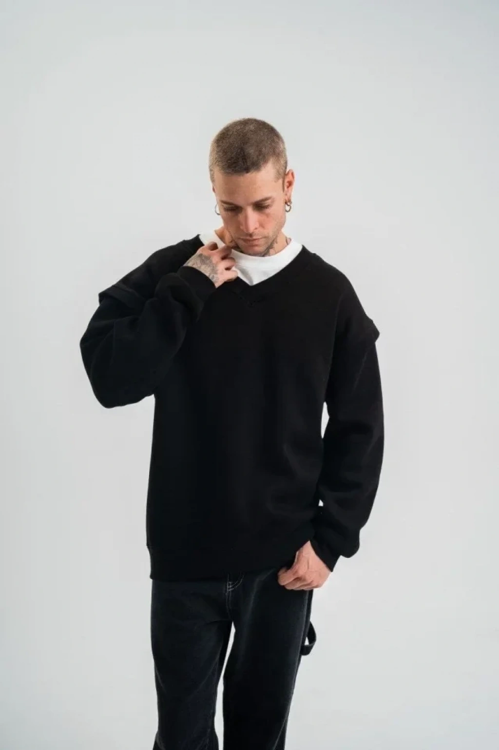 Geniş V Yaka Kol Ribana Detaylı weathirt iyah