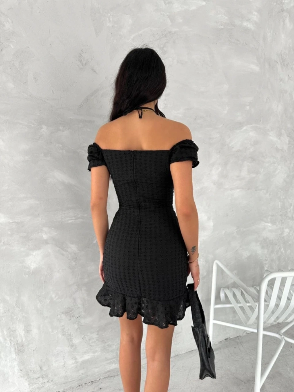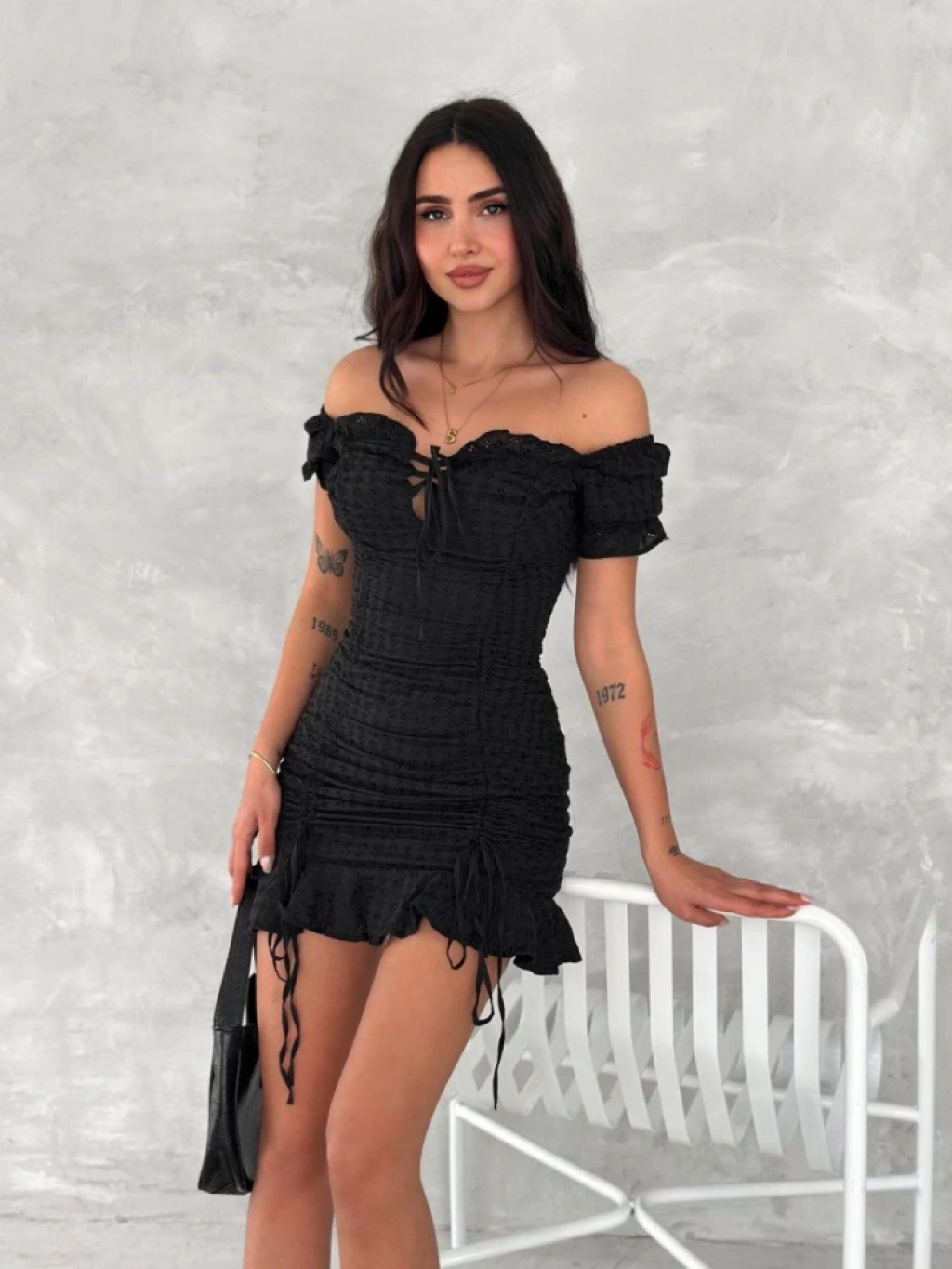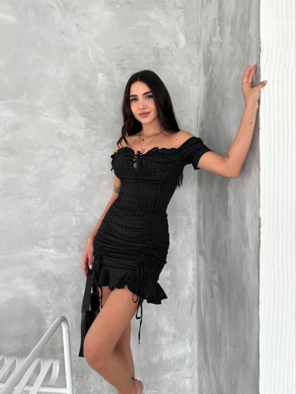 Göğüs Bağlamalı Mini Elbise - Siyah